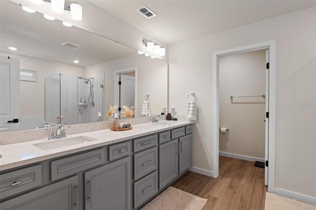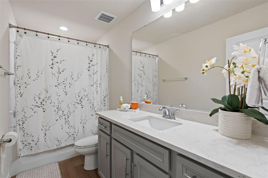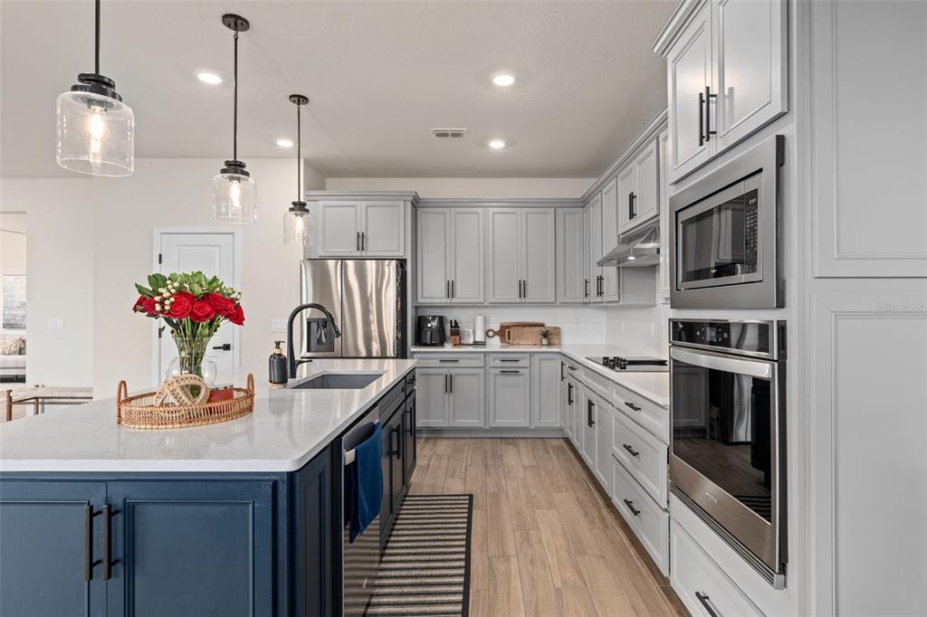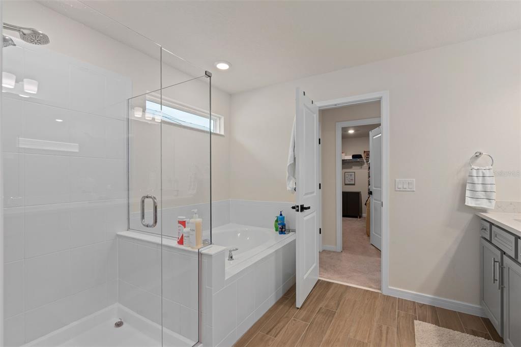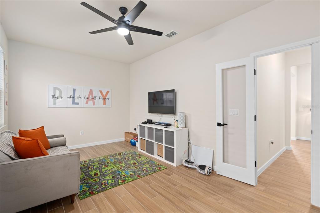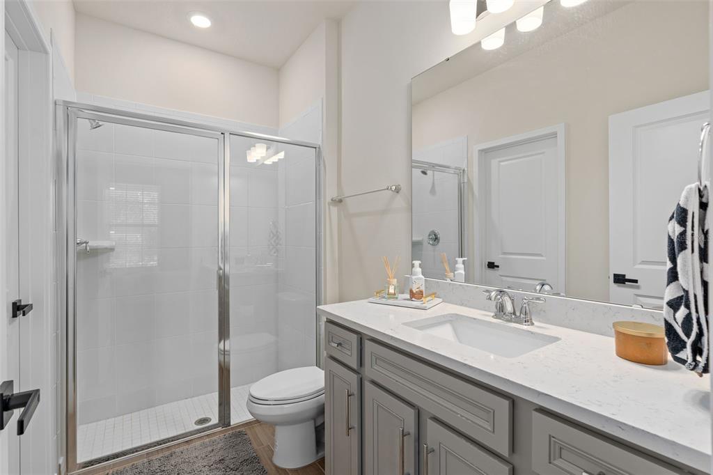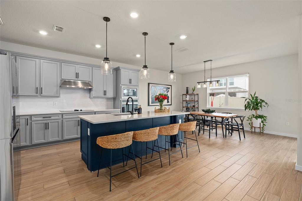 This stunning 5-bedroom, 3.5-bathroom home is nestled on one of the few corner lots in one of orlando's most perfectly designed and highly desired neighborhoods! living in savannah palms will keep you close to everything you need while making you feel like you're in your own peaceful, private community! from the moment you pull up, you'll see the paver driveway leading up to the covered front porch with the beautiful sitting area where you can sip coffee and watch the ducks play in the pond. as you pass through the wonderful front accent door, you will see that the entire first level is covered in upgraded porcelain tile. you'll pass the guest suite with full bath and a spacious walk-in closet. to the left of front door you will find the almost 200 square foot bonus room which could be a stately home office or game room! from there you'll see the double living room area with a beautiful custom accent wall with custom recessed lighting and chandelier installed. you'll also see the triple sliding glass door leading to the back porch with custom lighting installed to illuminate the back yard with the brand new vinyl fence. no expense has been spared in the kitchen - stone counters, custom cabinets with custom hardware, custom chandeliers, and an upgraded faucet! as you proceed upstairs, you'll find the wonderful primary suite with a luxurious bath and extended walk in closet! every upstairs bedroom has brand new ceiling fans installed. the upgraded laundry room comes with added cabinets, sink, and a brand new washer/dryer worth over $2000! all bathrooms have updated hardware, and the home holds almost $6,000 in upgraded window treatments and blinds! the full 2-car garage has also been upgraded with a brand new painted floor. come see all these beautiful upgrades today and make this home yours!985 SAVANNAH PALMS, ORLANDO, FL 32828