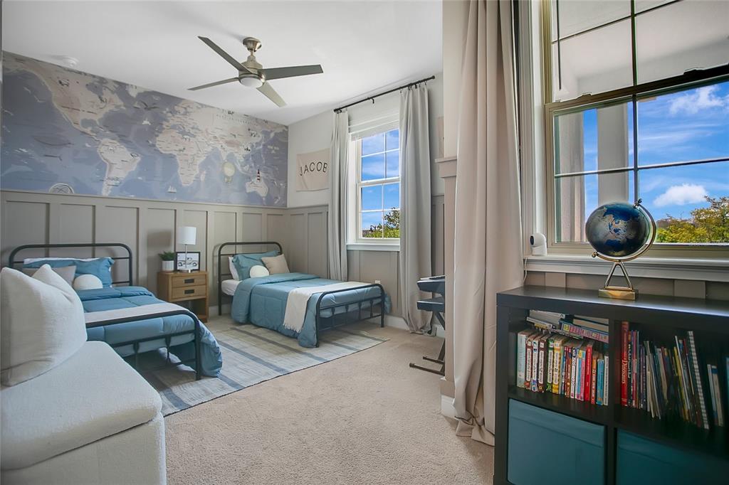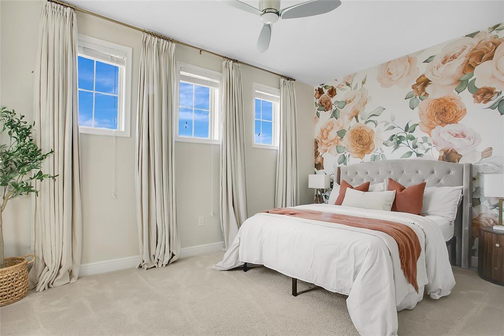 Welcome to your dream home in the highly desired eagle creek gated community! this stunning property offers an array of amenities, including a golf club, restaurant, dog park, community pool, rec center, two large meeting rooms perfect for hosting birthday parties, gym, tennis courts, basketball courts, kiddie pool, and kids' playgrounds. situated in the heart of lake nona, this home is conveniently close to the orlando international airport, 417 highway, disney and universal parks, boxi park, and much more. **kitchen upgrades:** - elegant kitchen cabinets - sleek white quartz countertops - custom-designed pantry cabinetry **laundry room updates:** - new lg thinq washer and dryer - upgraded shelves, cabinets, and wallpaper **power room updates:** - new vanity, lighting, mirror, paint, and wood paneling **office/bonus room updates:** - new flooring and custom built-in cabinetry **house exterior updates:** - fresh exterior paint - gutters installed all around with underground drainage connection - professional landscaping in the front and back - privacy shrubs all around - professional 24-hour surveillance cameras are installed, and no membership is required! - balcony lighting and fan - lanai fan - extended driveway pavers **additional updates:** - whole-house water filtration system, water softener, and osmosis system for drinking - wall molding throughout the house - pottery barn fireplace with custom wood paneling design - ceiling crown molding - recently epoxy-painted garage floors - custom built-in closets in the primary bedroom - custom built-in closets in bedrooms 2 and 3 - built-in desk, bookshelves, and wood paneling in bedroom 2 - wood panel design in bedrooms 1-3 - wallpaper design in the guest suite, along with new bathroom cabinetry don't miss the opportunity to own this beautifully updated home in a prime location with top-notch community amenities. schedule your showing today!9888 MERE, ORLANDO, FL 32832