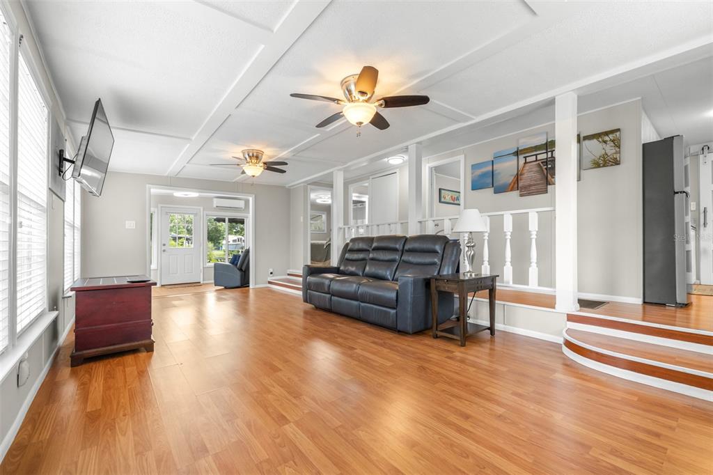 Welcome to your move-in-ready waterfront getaway, nestled on a peaceful canal with direct access to the beautiful henderson chain of lakes. this charming 2-bedroom, 1-bath mobile home has been thoughtfully updated and is bursting with character, comfort, and functionality, without the burden of hoa, cdd, or park fees. step inside to find an open-concept layout featuring a spacious living and dining area, an eat-in kitchen with stone-look backsplash, newer stainless steel appliances, and easy-care laminate flooring throughout. enjoy even more living space with a large family room and separate den/flex room, both filled with natural light and serene water views, not included in the heated square footage. these bonus spaces provide quiet spots to relax, work, or entertain while enjoying the beauty of the surrounding butterfly garden. this gem is being offered partially furnished, including a tv in the family room and beds in both bedrooms. outside, unwind on the wooden deck (with retractable awning) or gather around the firepit under the stars. the dock has been freshly redone and is ready for your boat plus, the community boat ramp is just $15/year. the lot is fenced on both sides, and a covered carport and storage shed add practical convenience. the home is located in flood zone x for the main structure, with only the canal area falling into ae, providing additional peace of mind. major updates include a hvac system (2023), supplementary split a/c unit (2024), water heater (2025), well pressure tank (2024), water softener with iron filter, and washer/dryer (2024). several windows have been replaced with double-panel, energy-star certified models and all windows come with blinds. an a/c unit has also been installed in the indoor laundry room. the renovated bathroom features a double granite vanity, and stylish lighting adds a modern touch throughout. schedule your private showing today! due to the manufacture date of the home, this will be a cash only sale.9936 E PERCH, INVERNESS, FL 34450