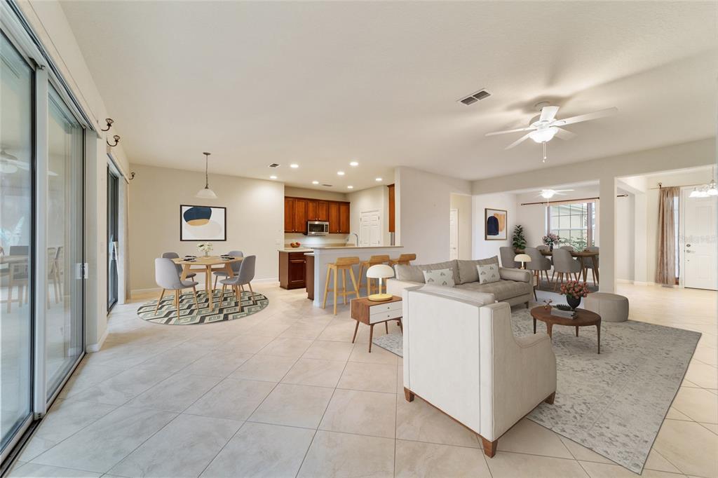 One or more photo(s) has been virtually staged. nice johnstown model situated in the desirable stone creek by del webb community. this home offers 3 bedrooms and 2 bathrooms, with a flex room and 3-car extended garage. the main living areas, bathrooms, and laundry room feature stylish diagonal tile flooring. ceiling fans and blinds throughout. the kitchen is equipped with stainless steel appliances and a pantry with solid french doors. the flex room has glass french doors. the south-facing back of the home provides a large, screened-in covered lanai for you to relax and enjoy reading a book or sipping your favorite beverage. with a split bedroom layout, your guests can enjoy the utmost privacy, making it the perfect place for them to stay. the exterior exudes charming curb appeal and the home is move-in ready. don't wait any longer, secure this home for yourself and add your own personal touches.9948 SW 69TH, OCALA, FL 34481