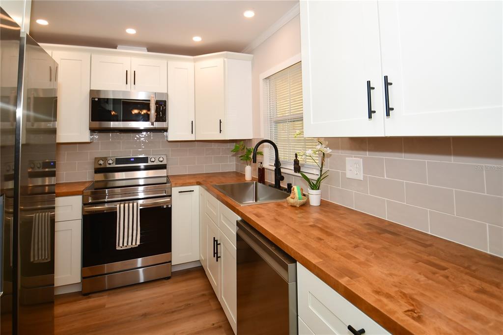 This charming two bedroom, two bath villa looks like it was plucked right off the page of a design magazine. as soon as you walk up to your new front door, you are greeted with a newly tiled front porch, and hurricane rated windows. once inside, the freshly painted light & bright interior, with luxury vinyl flooring throughout, is the perfect canvas to put together your new home. you will be the first person to cook in this stunning kitchen, and if the new white shaker cabinets, stainless appliances and custom butcher block countertops do not win you over, there is a beautiful custom coffee bar tucked away behind a pocket door, as well as a brand new washer & dryer! the split plan gives you plenty of privacy and both the bathrooms have been beautifully & completely updated, down to the plumbing. the sunroom at the back of the home adds additional living space and is the perfect spot to enjoy your morning coffee or set up a work from home station. the outdoor space is a great spot for your grill and additional entertaining. this property is truly like moving into a brand new home and one of the best things about the bent tree community is the $43 a month hoa fee and that it is in a non-flood zone! your new home is located just a few blocks from the shops & restaurants at the bardmoor promenade and baycare medical arts center. this villa has everything you need for a happy & healthy lifestyle!Villa 2 bedrooms - BENT TREE for Sale