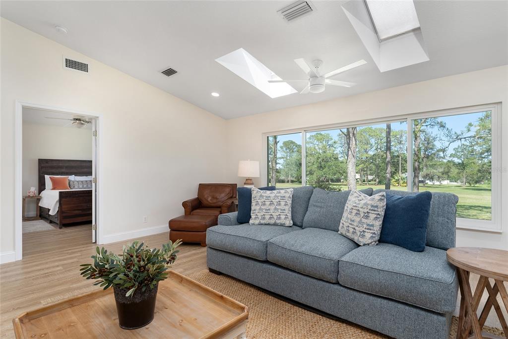 Split Bedroom Walk-In Closet(s) Vaulted Ceiling(s)Ceiling Fan(s) High Ceilings Living Room/Dining Room Combo Stone Counters Thermostat Open Floorplan Solid Wood Cabinets Primary Bedroom Main Floor Skylight(s)Exterior Features: