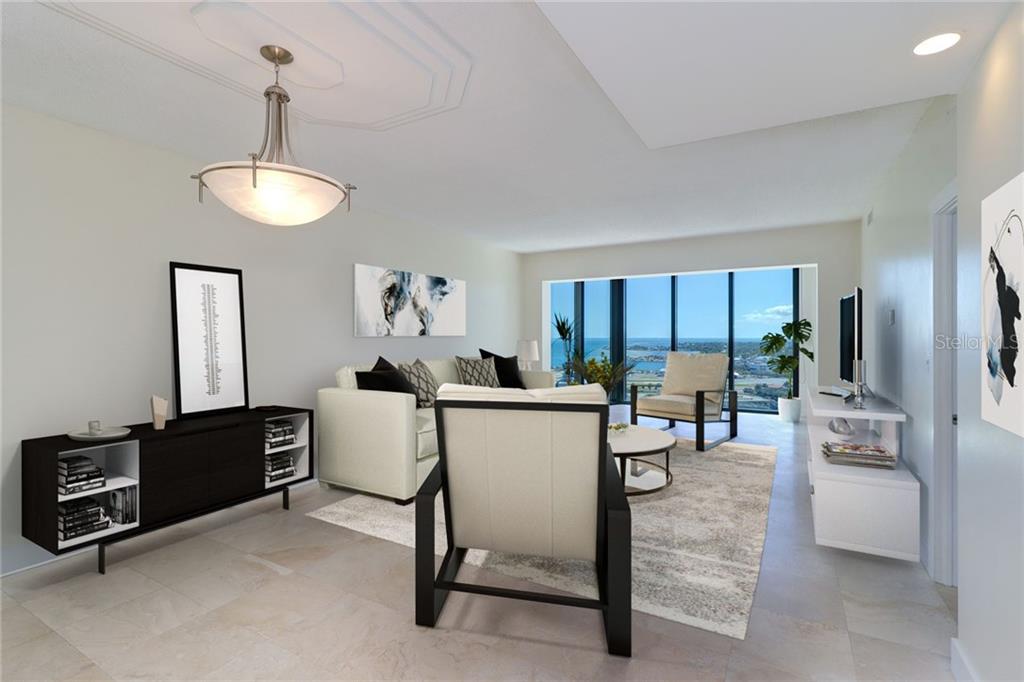 Enjoy the breathtaking, open water views from this 1 bedroom, 1 1/2 bath 1,146 sq. ft. 23rd-floor condominium in the highly sought after bayfront tower in downtown st. petersburg. rarely available, this "07"end unit has expansive and unobstructed views of the sparkling waters of tampa bay including the marina and the skyway bridge. this home was recently completely updated and features include a gorgeous kitchen with granite countertops, solid wood cabinetry, a glass tile back splash, oven with warming drawer, and two pantry closets. the kitchen opens into a massive great room with dining and living spaces and with access to the balcony. the master suite has its own en-suite bath, walk in closet and balcony access. the air conditioned storage closet is located only steps from the front door. bayfront tower offers a state of the art fitness center, sauna, heated rooftop pool, gas grills, yoga room, catering kitchen, library, game room, dance floor, meeting rooms, walking track on the 28th floor and a jogging track on the 29th floor. bft also offers 24-hour concierge and valet service included. st. petersburg's finest restaurants, cultural and sports venues, private airport - albert whitted and a yacht club with marina are all located within a short stroll.Condo Apartment 1 bedrooms - BAYFRONT TOWER CONDO