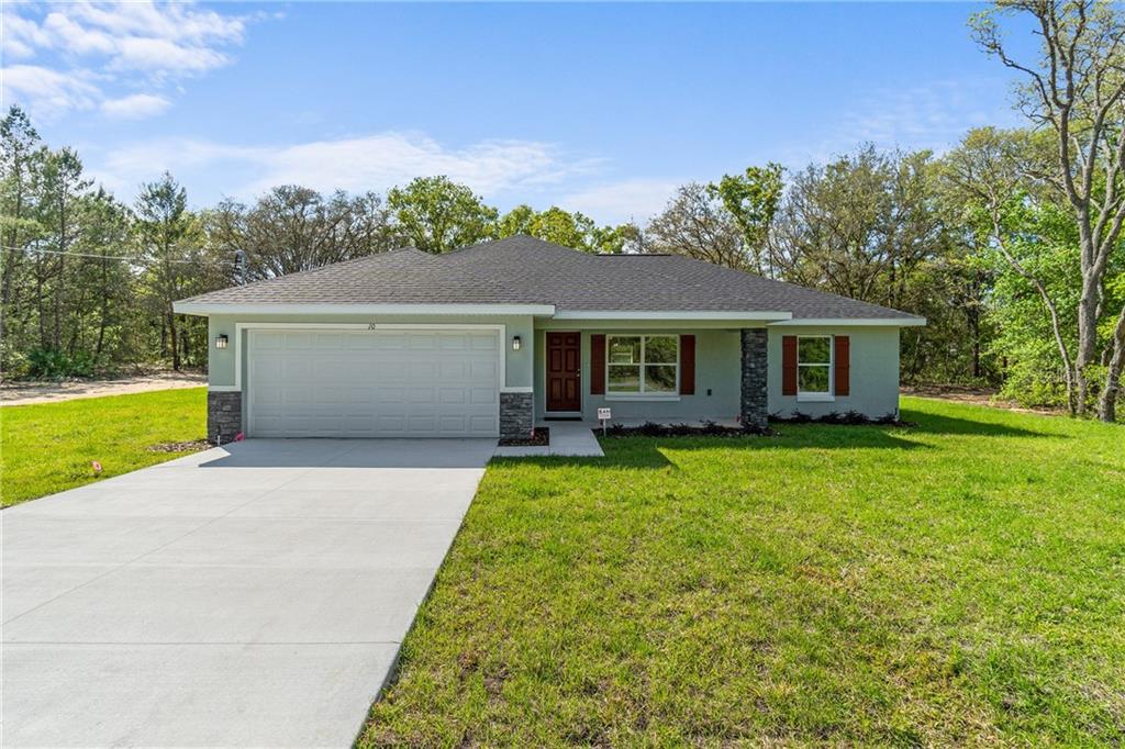 You must see this new home,..with stunning upgrades throughout! this lovely new home is brought to you by a luxury custom home developer. this brand-new home is great for a couple looking to downsize, or perfect for the first-time homeowner! the bright, beautiful modern open floor plan sits on a premium .46-acre lot. concrete block construction home with a stucco finish & stack stone accents, the layout is spacious from the living room to the dining room into the hi-end kitchen with vaulted ceilings, contemporary fan & pendant lighting, & 2” modern faux wht wood blinds with a smooth finish. the gorgeous kitchen features granite countertops & island, luxury samsung™ appliance package, with high-gloss contemporary soft-close cabinetry & pantry. the kitchen’s undercabinet lighting illuminates the stunning backsplash beautifully. the stainless-steel appliance package features a french door refrigerator & bottom freezer for easy access. throughout the home you'll find luxury vinyl plank floors that reflect a natural wood impression. the split home layout offers a master bedroom suite with tray ceiling & fan, oversized walk-in closet, dual sink granite countertop with upgraded cabinetry & a walk-in tiled shower w/a frameless glass door. the guest bathroom features equally luxury granite countertop & cabinetry with a tiled shower-tub combo. two-car garage w/opener. 10x10 open patio. irrigation system. alarm system. the home sits on a large lot—enough space to add your own hot tub/pool & enjoy a florida starry night in your big back yard! 100% usda financing available with as little as no out of pocket expenses for closing costs. owner has more new homes being constructed in the area.Single Family House 3 bedrooms - SILVER SPGS SHORES UN #36