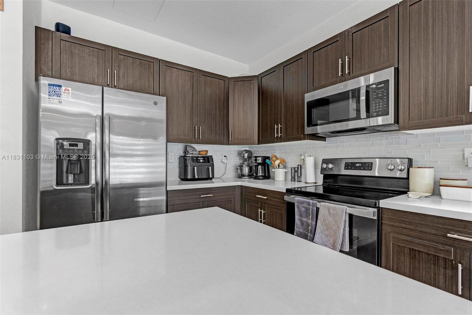 Up to $5,000 toward buyer’s closing costs with full-price offer.there’s a rare kind of peace you feel when you walk into a home designed for comfort and connection. this upgraded 4 bed / 3.5 bath townhome in aquabella by lennar sits on a quiet street near the miami-broward line, one of hialeah’s most connected and growing corridors. with no rear neighbors and easy 100th st. access, it offers privacy and ease. upstairs, the primary suite features a double-vanity bath, while a second bedroom also enjoys its own private bath, a rare find that adds flexibility for family or guests. smart lighting, cameras, keyless lock, tile and laminate floors, travertine patio. the garage retreat with epoxy floors and built-in bar invites fun. pools, clubhouse, gym, splash park, more than a home, your reset.Townhouse 4 bedrooms - Aquabella