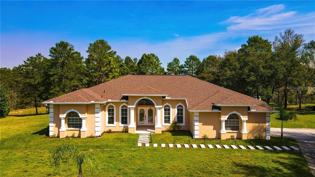 Welcome home to this gorgeous 4 bedroom / 3 bath pool home located in the remarkable estate community of woodland waters! this elegant home has plenty of room inside and out with 2,874 sq ft living space on a 1.12 acre parcel. here you will find the safety and serenity of a cul-de-sac homesite. there are 4 large bedrooms and 3 full baths, living room, family room, dining room plus an additional den/office right off the living area! the impressive kitchen includes 42" maple cabinets, granite counter tops, crown molding, a center island, breakfast bar, roll out shelves, self-closing drawers and a large walk-in pantry! the spacious 4th bedroom can easily be used as an in-law suite or bonus room. fall in love with the oversized master bedroom suite with a walk in shower, jetted tub, dual sinks on granite countertops, a private throne room and has its own entrance to the inviting pool area. a huge diamond brite pool featuring a peaceful waterfall makes for great entertaining or simply relaxing in your new backyard! a new 14 seer a/c was installed in september 2016, new stainless steel appliances in 2018 and a new roof and water heater installed in 2020!! schedule to see this magnificent home today!Single Family House 4 bedrooms - WOODLAND WATERS PH 4