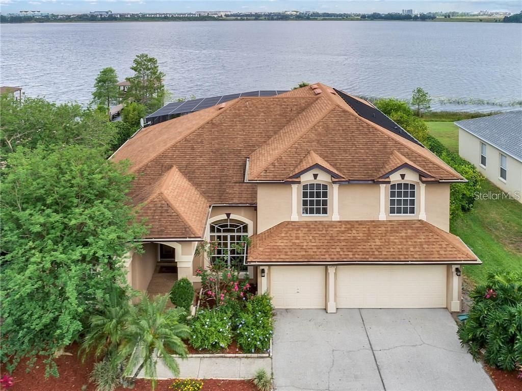 Lake frontage two-story solar-heated-pool home in dr. phillips h.s. district with breathtaking views of big sand lake, over 1-acre lot, newly updated master bath & big kitchen. a new roof in 2013 & mature landscaping offers a nice first impression. inside you will notice granite flooring in the living areas, family room & kitchen. large windows in the formal rooms allow plenty of natural light to showcase the open floor plan with high ceilings & remodeled kitchen with 42" cabinets, granite counters, double ovens, glass cook top & view of the family room, pool, patio, and lake. adjacent to the kitchen is a big laundry room with additional storage & dedicated guest suite & full bath. a spacious master suite, as with all bedrooms, staircase, and foyer overlooking the kitchen & family room features hardwood flooring. in addition to a sitting area with custom wood built-ins, the master offers two walk-in closets & remodeled master bath with new separate vanities, garden tub & separate shower enclosed with new seamless glass, new tile & new pebble stone base. a wood staircase leads the way to 3 additional bedrooms all with walk-in closets plus a 2nd full bath. one bedroom features a new large balcony patio with plank tile & looks upon an alluring view of big sand lake. adjacent to the pool is a sizeable patio & covered outdoor kitchen with new lighting, perfect for entertaining large parties. other exceptional features include new plumbing in 2012 and new pool-solar in 2014.Single Family House 5 bedrooms - SAND LAKE COVE