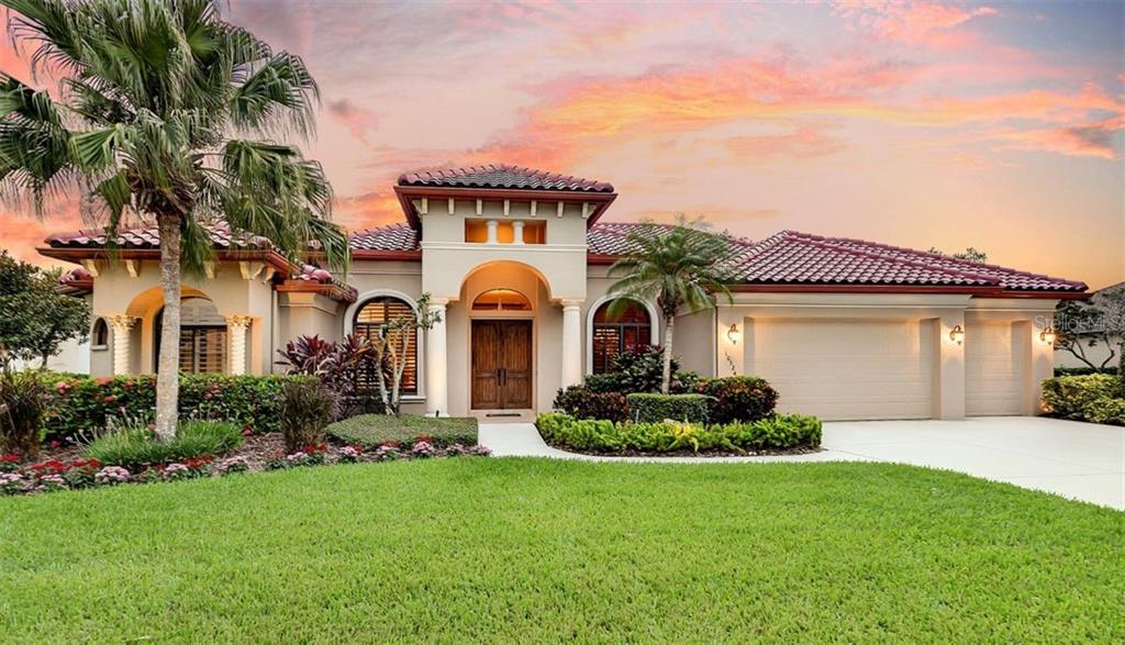 First time offered! must see this exquisite pruett custom-built home framed by towering majestic trees offering complete privacy and peaceful retreats in river club. enter through the double custom-made wood doors and you definitely have escaped the ordinary. here, you are afforded many lifestyle invitations including entertaining, serenity, and personal retreats. situated on a private lot, this home has been recently updated and is rich in detail and quality throughout. an inviting foyer opens to the formal dining room that flows to the living room with gas fireplace framed by built-ins, wet bar and sliding glass doors to the pool area. a chef's kitchen offering wood cabinetry, stone counters, newer stainless-steel appliances, center island, and opens to the informal dining and spacious family room with stone accent wall. the lavish master suite is complete with large walk-in closet featuring organizers, built-in shelving and an updated master bath with roman style walk-in shower, stone counters and separate soaking tub. the back bonus/media room is the perfect set-up for movie/game night or the 4th bedroom with walk-in closet and an entire wall of disappearing sliding glass doors to the outdoors. the sumptuous outdoor living includes a resort style pool, spa and two covered areas for entertaining or the perfect area to enjoy your morning coffee or evening cocktail around the pool, protected by a beautifully landscaped shaded area. this is a one level living offering 3-4 bedrooms, den, formal living and dining room, family room, bonus room and 3 full baths endless special comforts include: study/den with french doors and wood built-ins, all bedrooms have large walk-in closets, three completely renovated bathrooms, crown molding, high ceilings, two newer zoned hvac systems, well for irrigation, house generator, laundry room with plenty of storage cabinets and utility sink. architectural niches and detailing, tray ceilings, expanded 3 car garage with recently painted walls and floors, plantation shutters, window treatments, interior and exterior painted in 2018, pool heater replaced in 2018, gutters, led landscape lighting, extensive lush landscaped grounds for the gardener and a great ares for the dogs to play. enjoy ron garl designed 18-hole golf course in river club with no cdd's, low hoa fees along with all the conveniences of lakewood ranch's shopping, restaurants and entertaining.Single Family House 3 bedrooms - RIVER CLUB SOUTH SUBPHASE IV
