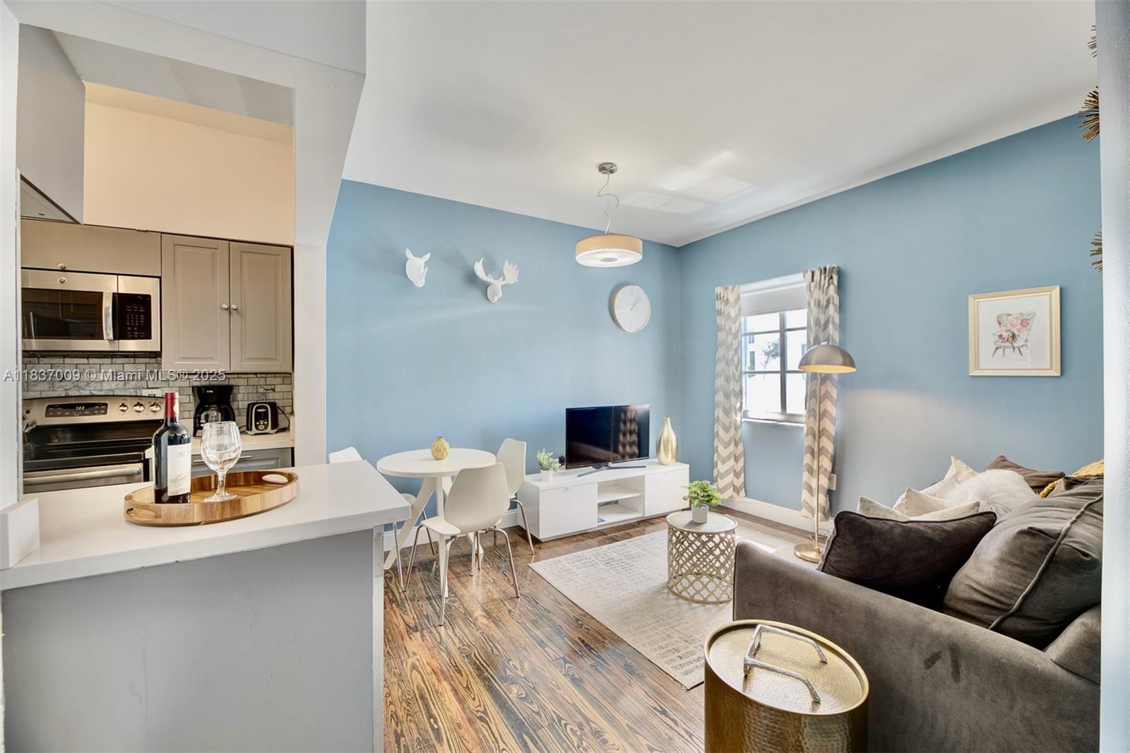 Daily rentals/airbnb allowed! beautifully renovated one bedroom apartment in a prime location on collins ave and a block from famous ocean dr and the beach. steps from shopping, dining and entertainment. no expense was spared in the renovation of the apartment with all areas redone, high impact windows installed in 2019. apartment can be used as an airbnb/short term vacation rental (per association and city license), long history of successful stays & raving reviews. lots of natural light! kitchen features modern cabinets, quartz countertops and subway tiles adding to the apartment's charm. spacious living and dining area off the kitchen. tax rolls show a studio but this apartment has a separated area for the bedroom providing privacy and a restful area. buyer to verify all info.Condo Apartment - DEL RIO CONDO