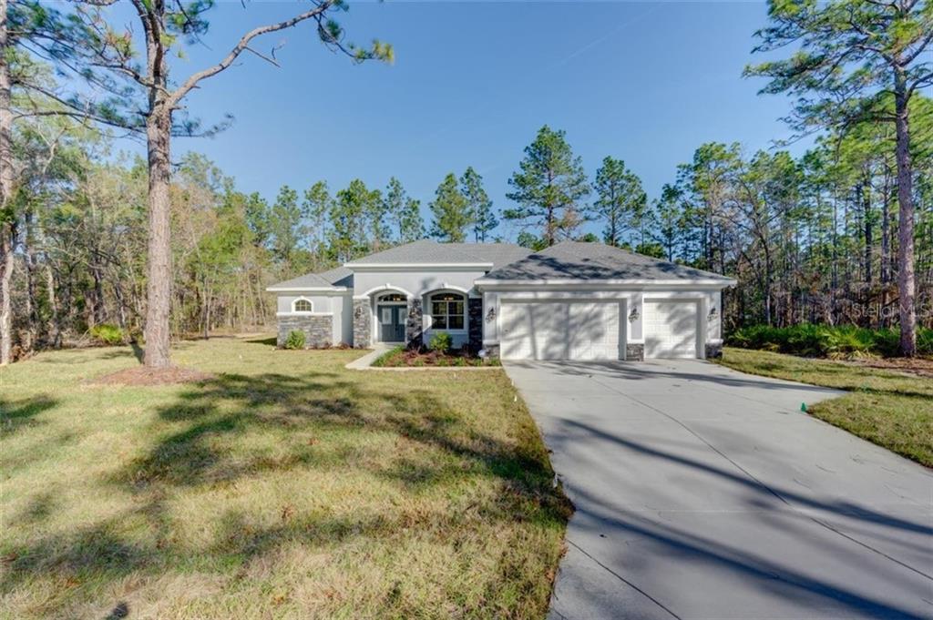 Under construction. current owner's change of plans is your gain! just completed. brand new and ready to move in home with open floor plan, 4 large bedrooms, 2 and 1/2 baths, and a large 3-car garage. take note: this is a custom and quality built pastore builder home with all the features and upgrades you would ever want. granite counter tops, 10-ft ceilings, 8-ft doors, wood plank tiles throughout living area, kenmore elite stainless-steel appliances, crown molding and tray ceilings, large fully wood cased windows, french doors to den and lanai, noise insulation to master suite, and roll out 36''/42'' kitchen cabinets with soft close hinges. designer fully tiled baths, expanded electrical features, designer moen fixtures and much more. centrally located 4th bedroom has french door making space ideal for office den or study room. laundry room offers cabinetry and space for drop zone area. for the exterior, you'll find an over sized, extra deep 3-car garage with a ceiling fan and wet sink, electrical panel in place for a pool, zoned sprinkler system, designer lighting, screened-in lanai and extensive stone work. extremely private and wide 1-acre lot on a paved road with no-build behind. great neighborhood of estate homes and close to shopping and restaurants. plenty of space for a pool and secondary structures. builder warranty included!Single Family House 4 bedrooms - ROYAL HIGHLANDS