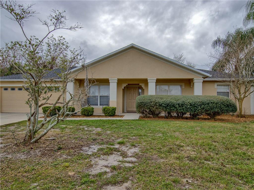 Uncommonly spacious block/stucco home on a great lot! over 1800 sq. ft. of heat/air living space in this 3/2 with a 2 car attached garage, new roof 2019. over .4 acre level lot offers an additional utility building for added storage! step inside to appreciate formal living room with vaulted ceiling and newer carpet. formal dining features crown moldings and hardwood floors! there's an abundant family room, also with vaulted ceilings, sliders to the lanai and same newer carpeting. kitchen offers all the conveniences including wood cabinets with crown moldings, glass tile backsplashes, a breakfast bar, closet pantry and newer smooth surface range. there's a breakfast nook area with large windows that overlook the oversized lanai that is complete with vinyl sliding windows. chic split plan design highlighted by spacious master suite that includes newer carpet, crown moldings, two walk-in closets with pocket doors and en suite full bath with two vanities, garden tub and separate step-in shower. guest wing offers two nicely sized bedrooms and full bath that is home to a dual sink vanity, ceramic tile tub surround for shower, and access door to the lanai...perhaps a future plan for a pool in the huge backyard? note the large brick patio under roof, and also brick parking pad in the backyard! there's an interior utility room, complete with washer/dryer and leads to the 2 car garage that is improved by pull-down attic storage, a side utility door, and a sink. convenient location, no hoa!Single Family House 3 bedrooms - ACREAGE & UNREC