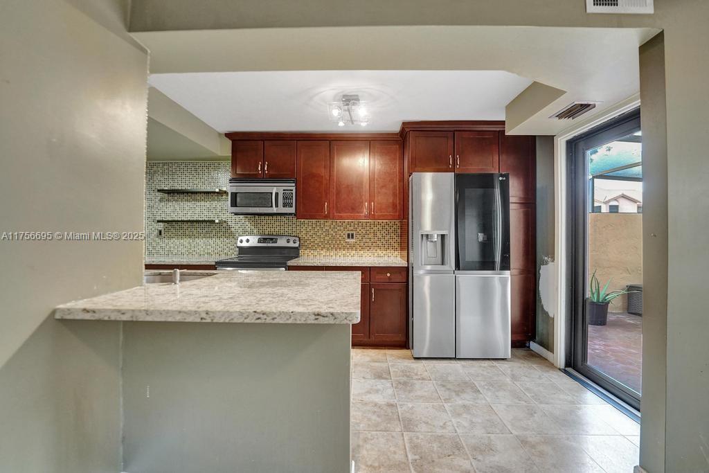 Wow, great value in updated end-unit corner th in gated heron's landing of pembroke pines! this stunning th boasts 2-story lr with 2 skylights, newer impact windows & doors throughout, open concept updated kitchen with counter bar, granite counters & backsplash, ss appliances & wood cabinets. laundry & powder room on main level. a huge private screened patio is great to enjoy outdoors & for entertaining guests. the 2nd level is complete with spacious 2 brs 2 bths. the primary br has a large walk-in closet & en-suite bath with two sinks & additional closet. new ac & 1-car garage + exterior space. lowest hoa fees $185 a month includes: outdoor pool, indoor rb & bb courts, gym & child's play area, all in secure gated community! seller to provide $3,500 credit at closing to buyer for updating.Townhouse 2 bedrooms - Heron's Landing