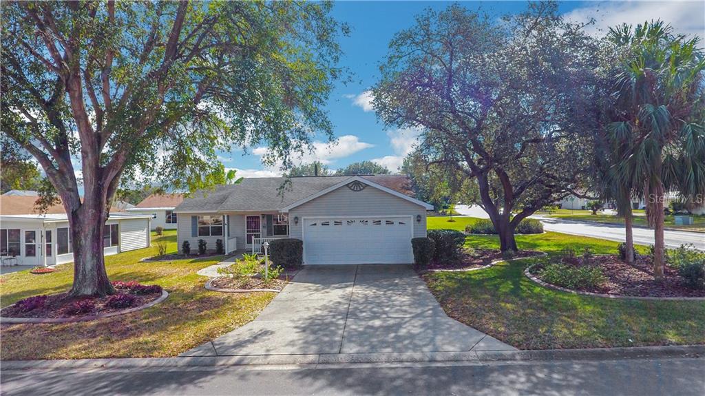 No bond on this 2 bedroom 2 bath partially furnished abeline model. just one mile from spanish springs square, it is easy to jump into the cart and go. this corner lot home features mature trees, and landscaping, an enclosed florida room which offers extra space to play games, dine or relax with neighbors, and if that's not enough it also has a covered patio. the 2 car garage has garage opener, plenty of room for a car, golf cart, and has built in workbench. inside features a formal dining room, two bedrooms large enough for king beds, large walk in closets, inside laundry, and vinyl plank flooring. there is no carpet here!Single Family House 2 bedrooms - THE VILLAGES