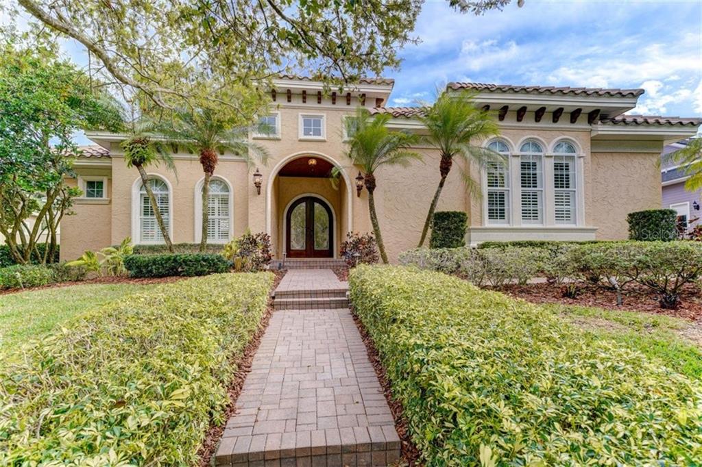 Luxury, class & style best describes this custom-built one-story showcase residence located in highlands of innisbrook, palm harbor's exclusive 24-hour manned gated golf course community. paved walkway leads to the arched grand courtyard entrance and the secluded outdoor retreat space complete w/the soothing sounds of cascading waterfalls! inside this functional split floor plan includes 3,320 sf, 4 br’s/4ba’s ensuite + 3 car side load garage. architectural details & amenities include coffered ceilings, dbl tray ceilings, suspended curved ceilings, crown mldgs., art niches, arched doorways, transom windows, 7 ¾” baseboard mldgs., carved stone mantle gas f/p, plantation shutters, custom window treatments, led smart hue lighting, smart hub w/d & refrigerator and a custom van buren library. the exterior 4th br off the courtyard is a “flexible living space” or in-law/guest quarters/study. chef’s spacious kitchen w/exotic granite countertops, ctr island, wi pantry, butler’s pantry, custom seeded glass wood cabinetry, ro system, natural gas 5-burner, ss smart refrigerator. family rm. w/gas f/p, bose ss. generous master suite w/seating area, coffered ceiling, wi closet w/organizers. mba w/dual vanities, spa tub, wi shower w/dbl heads & garden view. outdoors private courtyard w/paver deck, pebble tec pool, cascading waterfalls & custom teak wood ceilings. nest powered smart home. innisbrook resort 6 htd pools including loch ness, water slide, 4 golf courses, 11 tennis cts, fitness ctr, racquetball & spa.Single Family House 4 bedrooms - HIGHLANDS OF INNISBROOK