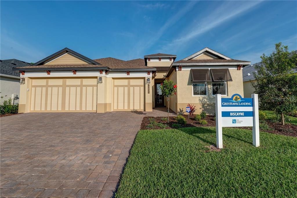 Under construction. brand new construction -biscayne floorplan! built by sam rodgers homes with pure elegance from the moment you pull up to the brick paved driveway. gourmet kitchen offers stainless steel convection wall oven, gas cook top with hood vent, microwave and deluxe refrigerator. quartz countertops thru out. lanai with pool is perfect for all your outdoor entertaining. artist rendering, photo not of actual home in mlsSingle Family House 3 bedrooms - GREYHAWK LANDING WEST PH V-A