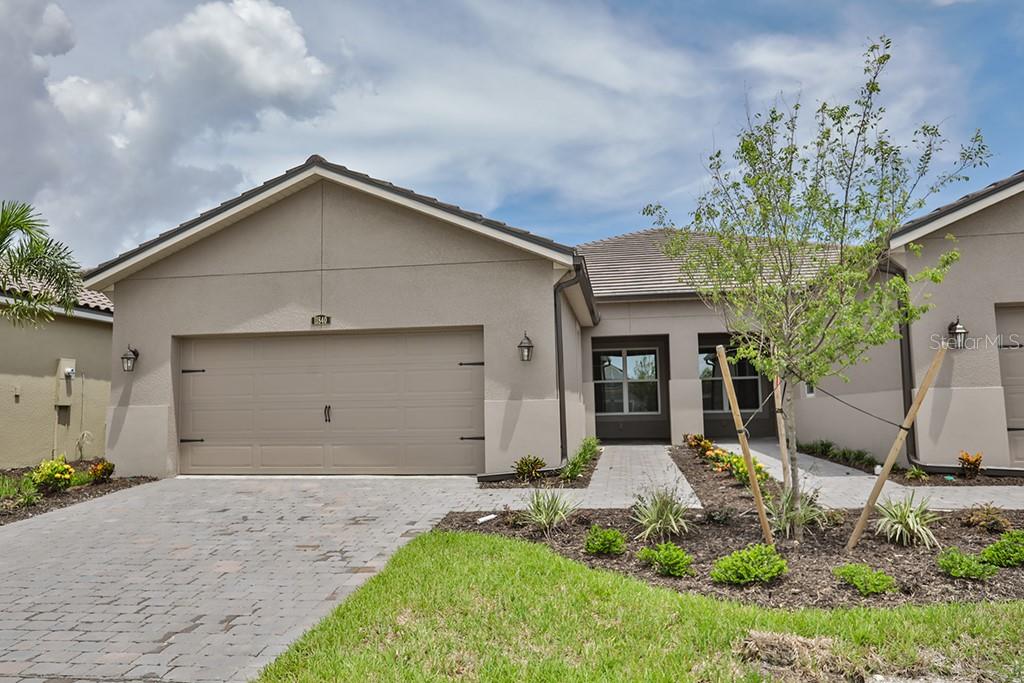 Ready now!!! traditional style villa. three bedroom, two bath, two car garage, flowing floor plan with 12 x 24 tile flooring in all main living areas, carpet in the bedrooms. kitchen offers stainless steel appliances, 42" upper cabinets in espresso with crema pearl granite counter tops. master suite features tray ceilings with large master bath offering dual sinks, large shower with seat, massive walk in closet. great room features large sliders that you can open up to the screened in lanai, over looking the preserve area out back. located in a gated community with clubhouse, pool, tennis courts, pickleball and more! epoxy garage floor coating for easy clean ups. make an appointment to see today.Villa 3 bedrooms - RENAISSANCE AT WEST VILLAGES