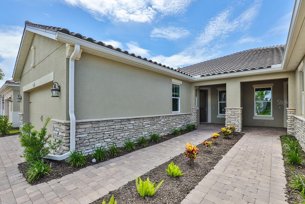 Ready now!!! traditional style villa is perfect for maintenance free living. easy upkeep with stylish lazio plus plank flooring in all area's but bedrooms and baths, your exterior maintenance it taken care of! nice open floor plan with two bedrooms, two full baths, dining room and a study. l shaped kitchen with oversized breakfast bar on an island features bianco antico granite counter tops on linen color cabinets, glass tile backsplash. cabinet features include double waste basket pull out, 42" upper cabinets and built in area for the fridge which comes with the home! stainless steel appliances include range, microwave range hood and dishwasher. dining room is located right across from the kitchen. open flowing kitchen, dining and great room. large sliders open up onto the screened in lanai off the back of the home. study is located in the front of the the home and offers a great place for at home office or formal sitting room. owner's suite is situated in the rear of the house and has a tray ceiling, owner's bath offers large shower with seat, dual sink raised height vanity, linen closet and water closet. large walk in closet off the bath features double hanging shelved on the largest wall. little extras like 8' doors through out, ecobee4 smart thermostat, usb ports in the kitchen and owner's suite and more. community features bocce and pickle ball, resort style pool, amazing clubhouse and fitness center.Villa 2 bedrooms - RENAISSANCE AT WEST VILLAGES