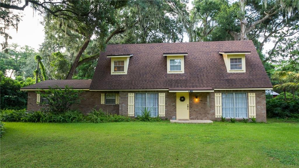 This cottage farmhouse is nestled off the street in a non deed restricted neighborhood with lush established landscaping and large mature oaks & palms. this 4 bedroom two story homes has a side entry two car garage and a 26x36 detached workshop with 9' over sized double doors. this property is just shy of a half acre and has conservation views for peaceful scenic evenings. the large separate dining room and formal living room with large ceiling to floor picture windows bringing in lots of light are just off the front entry. circle around to a very warm and inviting family room adorned with a brick wood-burning fireplace accented with bookshelves on both sides, and a french door leading you to your 9x30 screened lanai. the kitchen has corian counters, tile backsplash, appliances, breakfast bar and eat in space for a dinette and has a french door leading to your oversized screened lanai. a beautiful spindle staircase leads to the sleeping quarters. the master suite is located on the second floor and has two walk in closets, double vanity sinks, shower/tub combination. all of the bedrooms are a generous size ,have a good amount of storage and natural light, wood laminate and overhead lighting. the secondary bath room has a separate area from tub/shower sink area with two additional vanity sinks. large indoor laundry/utility room this home is convenient to route 60 for shopping, dining and entertainment. low taxes, no hoa or cdd's.Single Family House 4 bedrooms - HAMNER'S W E AND MARJORY B FREDONIA REYNOLDS SUB