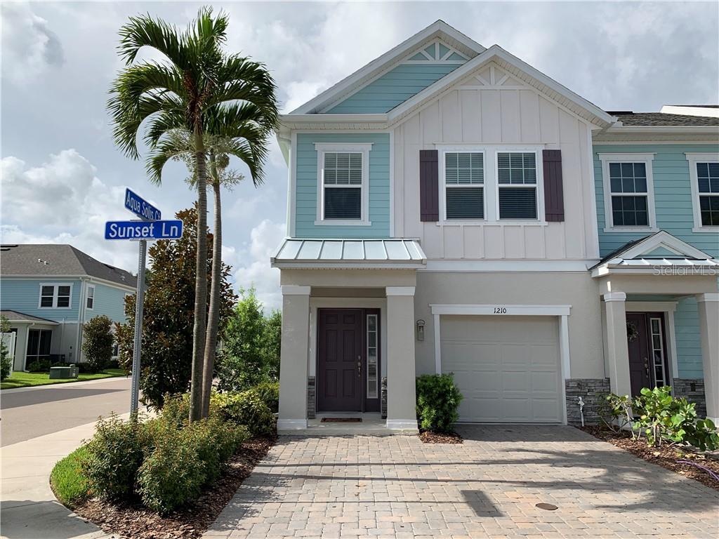 Rare opportunity to purchase gorgeous end unit townhome in dunedin's gated aqua solis! this spacious, custom built 'aruba' model features 3 beds, 2 1/2 baths and is immaculately maintained. high ceilings and extra sunlight through 4 additional side windows add to the openness of this stylish home. the sleek, modern kitchen features solid quartz countertops, breakfast bar, sonoma truffle 42" kitchen cabinets, elegant chateau santori backsplash, and energy star® stainless steel whirlpool® appliances. the combined living and dining room open to a private, screened lanai. the indoor laundry is smartly positioned on the second floor where the master ensuite with walk-in closet is split from the two additional bedrooms. upgraded features in this home include beautiful laminate wood floors on first floor and stairs, ceiling fans and modern lighting. there is plenty of storage with closets throughout, kitchen pantry and storage under the stairs. beyond the one car garage, enjoy extra parking space with a 2-car brick paved driveway. this 2-year-old home is designed to meet and exceed the latest energy star® standards. aqua solis is a beautiful key west-inspired gated community with sidewalks, a dog park and sparkling pool, and is located a bike ride from vibrant downtown dunedin and pier. world famous beaches are just minutes away! schedule a showing today!Townhouse 3 bedrooms - AQUA SOLIS