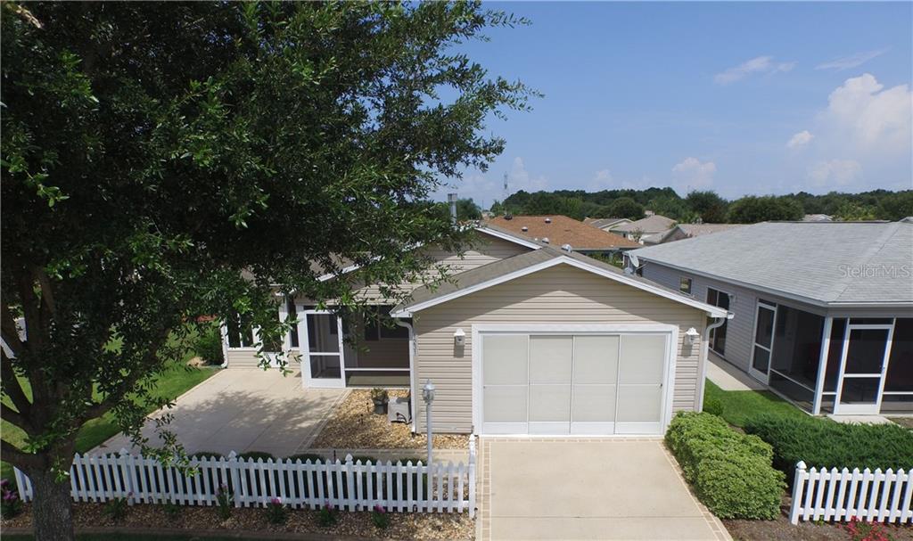 Lovely colony patio villa located in the village of caroline! this one-of-a-kind patio villa must be seen to appreciate all of the unique upgrades this home has to offer. upon entering the home, you'll be amazed at the spacious living area with volume ceilings. large open outside patio area leading to a side door to the 12x13 office/florida room which is under heat and air, ceramic tile flooring, thermal windows, a french door leading to the living area which extended the living room wall. there is beautiful cherry top-of-the-line laminate throughout the living and dining rooms, bedrooms, kitchen and hallway. the kitchen has all newer stainless appliances, new deep stainless sink with stainless single handle pullout spray faucet! the cherry birch cabinets have crown molding, nickel hardware and pullout drawers while beautiful granite countertops and backsplash add the finishing touch! the garage has frontload washer and dryer, built in cabinets, there is still plenty of room in the garage for lots of storage with extra storage room and a car + golf cart! solar tubes in the kitchen, master and hall bath have also been added! beautiful and all on a large private corner lot with extra parking! tax line reflects ad valorem and non ad valorem taxes - low bond balance $6871.35. home is where your story begins. let me help you start a new chapter!Villa 2 bedrooms - VILLAGES OF SUMTER KAYLEE VILLAS