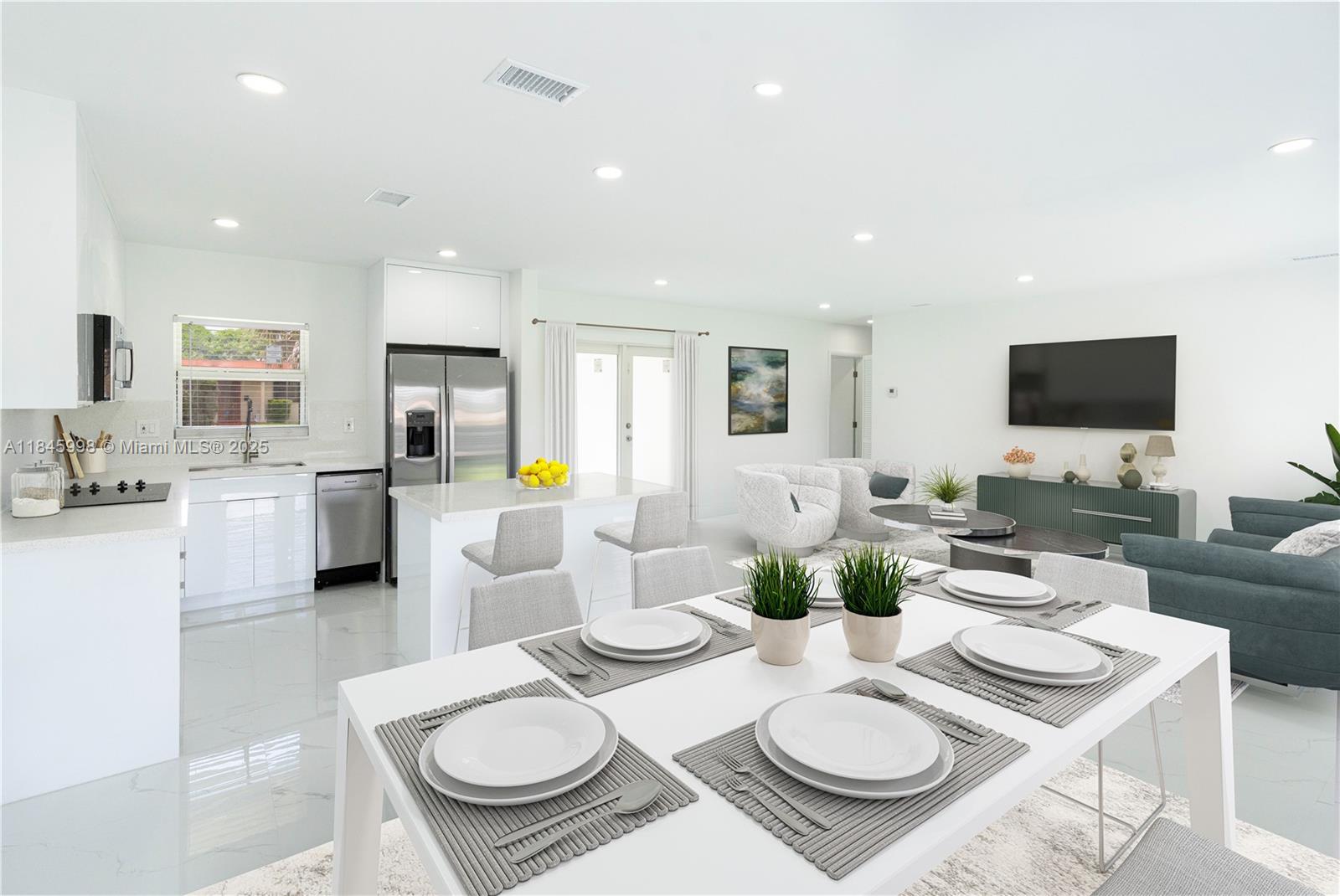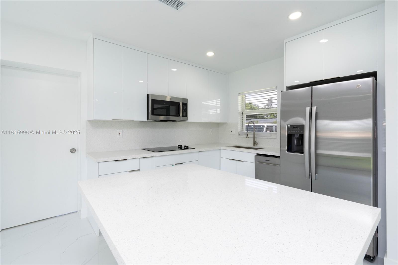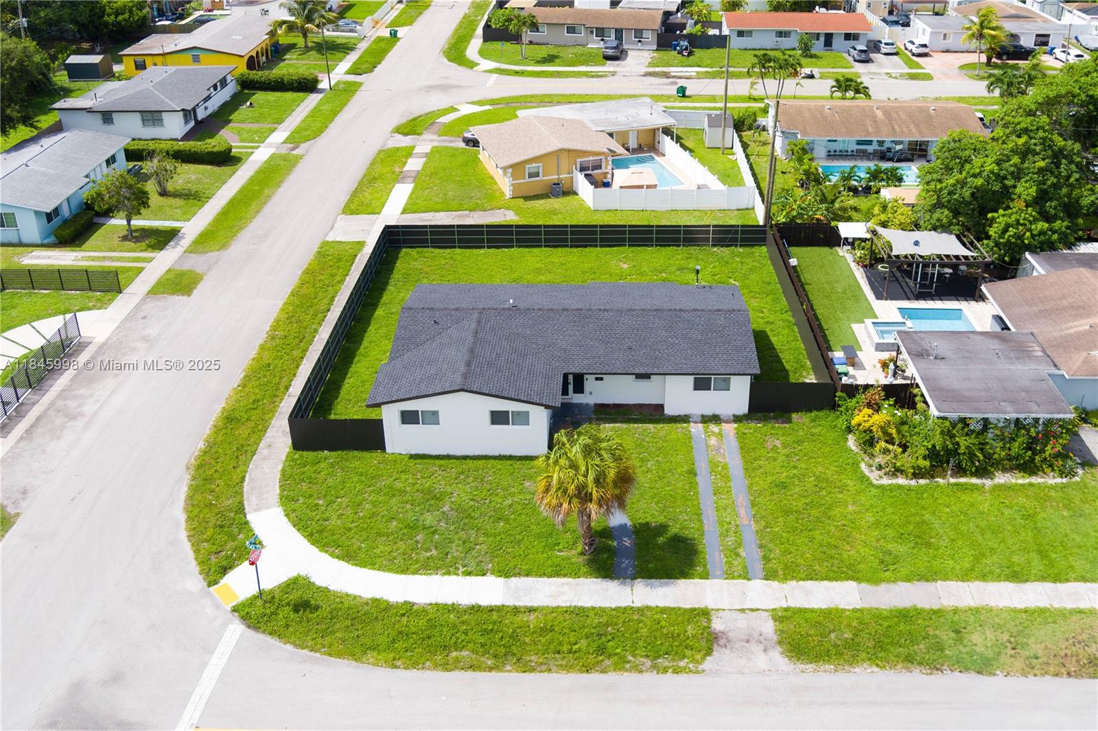 Beautiful and spacious 4 beds /3 baths single family home without hoa! oversized corner lot. garage was converted to master bedroom, bathroom. current living area is bigger compared to tax records. property has been completely updated with the permits. home offers lots of natural light, open concept updated kitchen with new ss appliances, modern porcelain tile and baseboards throughout, all updated bathrooms, recessed light fixtures, new roof 2025, completely updated pvc plumbing, complete hurricane impact windows and doors, new ac handler and condenser, new split ac, tankless water heater, new fence was installed all around the property, smart video ring doorbell and much more.... property is located close to hard rock stadium, expressways, beaches, malls and shopping area. welcome home!Single Family House 4 bedrooms - SCOTT LAKE MANOR SEC 8