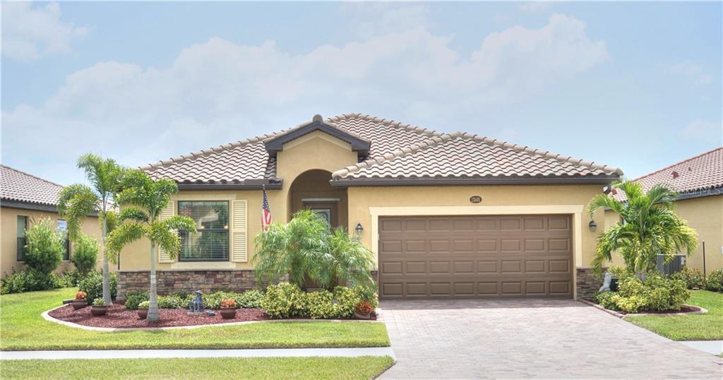 See it now! this one won't last. beautifully appointed capri floor plan. 2 years young and meticulously cared for. why wait to build? one of the best lots to own with expansive water views and no homes directly across the lake. southwest exposure for light all day long and magnificent sunsets. enjoy the florida weather sitting on your pavered lanai, your own personal hot tub, or the extended pavered patio. gorgeous landscaping and curb appeal. leaded glass front door. spacious open floor plan, large kitchen with tons of granite counter space and cabinets, back splash, and stainless steel appliances. 20 inch tile flooring on the diagonal and crown molding through out main living areas. large master suite with view of lake. master bath has dual sinks, walk in shower, and garden tub. split floor plan with guest bedrooms on other side of home. hurricane shutters. some furnishing available separately. perfect home for a snowbird or full time resident. don't miss out! gran paradiso offers resort stye amenities including a grand clubhouse offering library, pool tables, card room and a full time activities director, heated beach entry pool, sauna, state of the art fitness center, tennis and pickle ball courts. all part of the west villages in wellen park with shopping, restaurants, and new atlanta braves spring training stadium close by. plus just minutes to beaches, downtown venice, airports, theatres, restaurants, and so much more. come find your florida lifestyle today! 3d walk through at https://my.matterport.com/show/?m=2cscv6hx1sv&mls=1Single Family House 3 bedrooms - GRAN PARADISO PH 1
