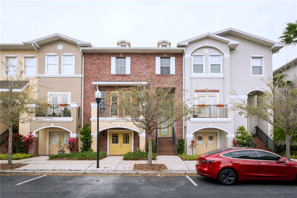 Three-story townhome zoned live includes four bedrooms, two full baths and two half baths. there are two separate addresses 12539 for the townhouse and 12541 for first level 4th bedroom or office/store front unit. lower level has separate entrance and address. ground floor unit includes 18 x 19 open space room with half bath and closet/storage. this unit can be used as fourth bedroom or for commercial space such as office or storefront and can be rented separately for additional income ($750 or more). there is a 2.5 car oversized garage with rear access and in walking distance to community pool. the second floor features a designer kitchen with granite tops, island bar and eat-in kitchen area as well as sliding doors to front balcony. on this floor is the living room, formal dining room/den with half bath and sliding doors leading to rear screened porch. the third floor has a huge master suite with a walk in closet in addition to a master bath with a huge tub and shower. on this floor, there is also an additional two bedrooms, a full bath and laundry room, and an open loft. hampton lakes is a beautiful community in the westchase/waterchase area with no cdd's and low homeowner fees of $230.00 monthly (includes water). home also comes with hurricane shutters. walk to starbucks, restaurants, grocery, hair salon and much more.Townhouse 4 bedrooms - HAMPTON LAKES AT MAIN STREET