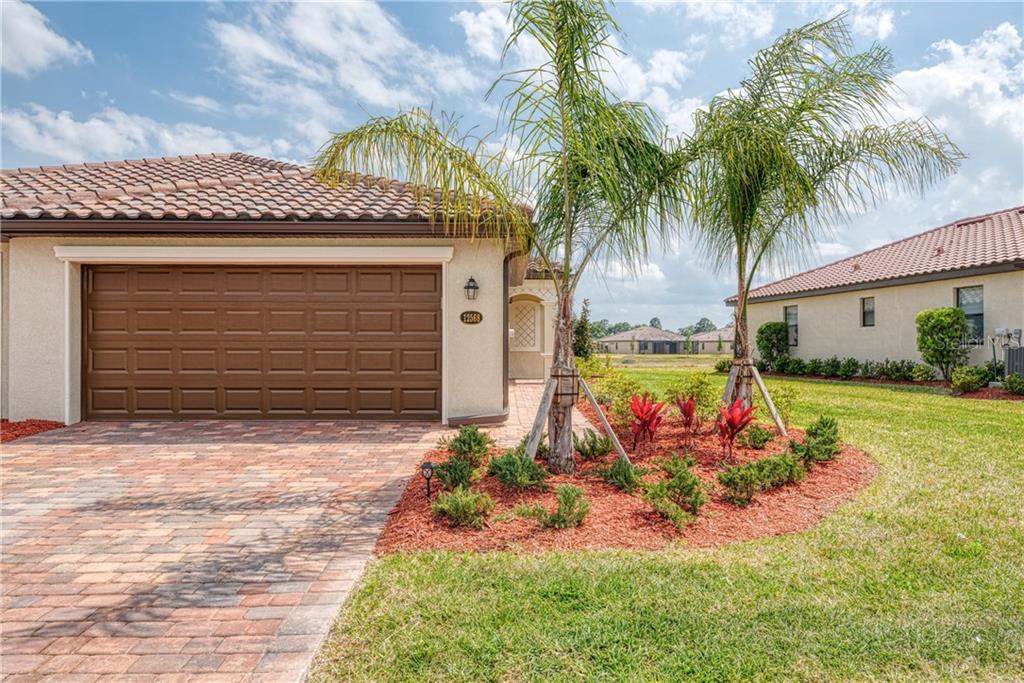 You will live your best life in this impeccably updated orchid villa in the resort community of gran paradiso. owner did significant upgrades that include diagonal tile in living areas and baths. high end lighting and fans grace the entire property. the white kitchen is right out of hgtv and includes a breakfast bar with pendant lighting, enhanced granite counters, and stainless steel appliances. the dining room will accommodate the largest of tables for your guests and will be graced by the top quality lighting and custom mirrored wall feature. enjoyment of the expansive water view will be had from the sizable living room with slider to the lanai with lighted fan. the master bedroom can handle king size furniture and has double closets leading to the ensuite with soaking tub, separate shower, and white vanity with double sinks. the den/office has glass double doors and can be used as a third bedroom if desired. this split floorplan finds the guest bedroom and second bath at the far end of the home thus giving everyone maximum privacy. a designated laundry room and 2 car garage round out this move in ready home. gran paradiso offers the florida lifestyle with a resort style heated pool, tuscan inspired amenity center, full time activities director and miles of walking trails. this a new home without the new build fees that include capital contribution fee of $1,200, irrigation hook-up fee of $1,500 and a $400 final survey fee. to make this home your own schedule your showing today.Villa 2 bedrooms - GRAN PARADISO