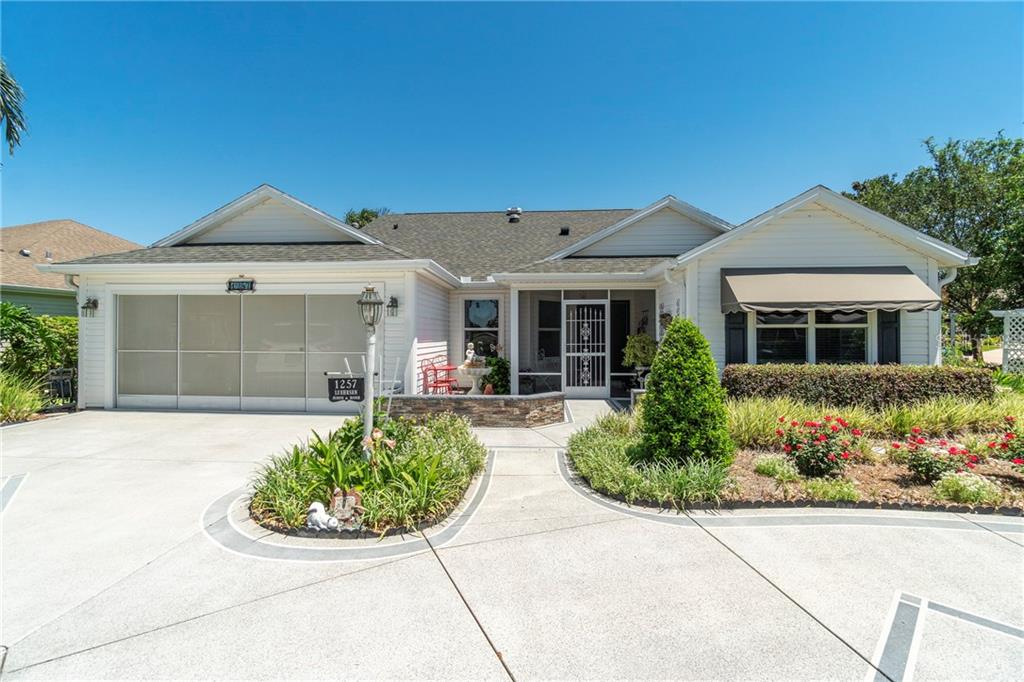 One of a kind lot located in glenbrook! 3 bedroom (one w/out a closet) 2 bath designer magnolia on a corner lot on a cul de sac, with lots of privacy! when you arrive you will notice the circular painted driveway. cute front screened porch with added pavers and stacked rock border. fabulous landscaping through the whole yard! this home is enhanced by beautiful laminate flooring in the main living areas and tile flooring in the bathrooms and laundry room. this open floor plan is great for entertaining the kitchen has a solar tube for extra natural light, breakfast nook, large moveable island for extra counter & storage space. newer ge appliances & gas stove, composite granite double sink, under & over counter lighting & pull-outs! the living room/dining room has vaulted ceilings and new lighting/fans. the large slider opens up to the all seasons enclosed lanai under heat & air w/ luxury vinyl plank flooring built in shelves and electric fireplace! the master ensuite is equipped w/ vaulted ceilings dual closets, large linen closet w/ extra storage above! dual siks & new jetta stone shower! the guest quarters is on the opposite side of the home w/ a pocket door for privacy. the bath has been updated w/ a jetta stone shower. inside laundry with newer washer and dryer and cabinetry. the 2 car garage has cabinets and a screen. you will enjoy sitting on your back birdcage w/ weather cover and listen to the tranquil sounds from the fishpond w/ 2 waterfalls. bond paid new roof 2019 new hvac 2018!Single Family House 3 bedrooms - THE VILLAGES