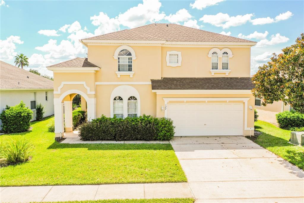Beautiful five bedroom, 4 full bath, modern mediterranean home in calabay park at tower lake phase 2. investors take note, calabay park at tower lake is a 24 hour guard gated community that allows short and long term rentals. this home will make a great year round home or rental property as this home's location is only minutes to walt disney world and major roadways making easy access to all central florida attractions and west coast beaches! lots of curb appeal from the stucco exterior with arched windows and doors to the mature landscaping. inside the foyer is pillared and you will immediately notice that the mediterranean details abound inside as well with arched niches in the dining room and wrought iron stairway railing to the second floor. very open light and bright floor plan. luxury vinyl plank flooring throughout the dining room, great room and hallways. the great room offers a a large arched niche to house your entertainment center and sliding glass door leading to the patio/pool area. the kitchen features a ceramic floor, ample quality wood cabinetry, granite peninsula bar and countertops, walk in pantry and stainless steel appliances including range/oven, refrigerator, dishwasher and microwave and stainless steel undermount sink. the eating area also has ceramic flooring and is flooded with natural light. the first floor carpeted master bedroom with en-suite bath gives you plenty of walk-in closet and storage space and also a french door to the pool/patio area, outdoors. the huge master bath features, double vanities and sinks, garden tub with picture window, private, separate commode and glass shower area and lots of natural light. the upstairs also features a second and third en-suite bedrooms and baths with showers and spacious closets. the fourth bedroom would make a great guest suite. ceramic tile, neutral carpet and paint, ceiling fans, lovely ornate white trim and custom blinds are also throughout this home. convenient fully applianced first floor laundry. the pool with spa area are just one of the many highlights of this home. an in-ground l-shaped fabulous pool with spa, underneath a fully screened lanai and covered porch, make for a wonderful place to entertain or just relax. you have it all right here at 127 minniehaha circle in calabay park at tower lake. calabay park at tower lake is not only an executive secure, gated community, it offers a relaxing tranquil atmosphere where you can fish or take a lovely walk down to the lakeside to enjoy the stunning sunsets.Single Family House 5 bedrooms - CALABAY PARK AT TOWER LAKE PH 02