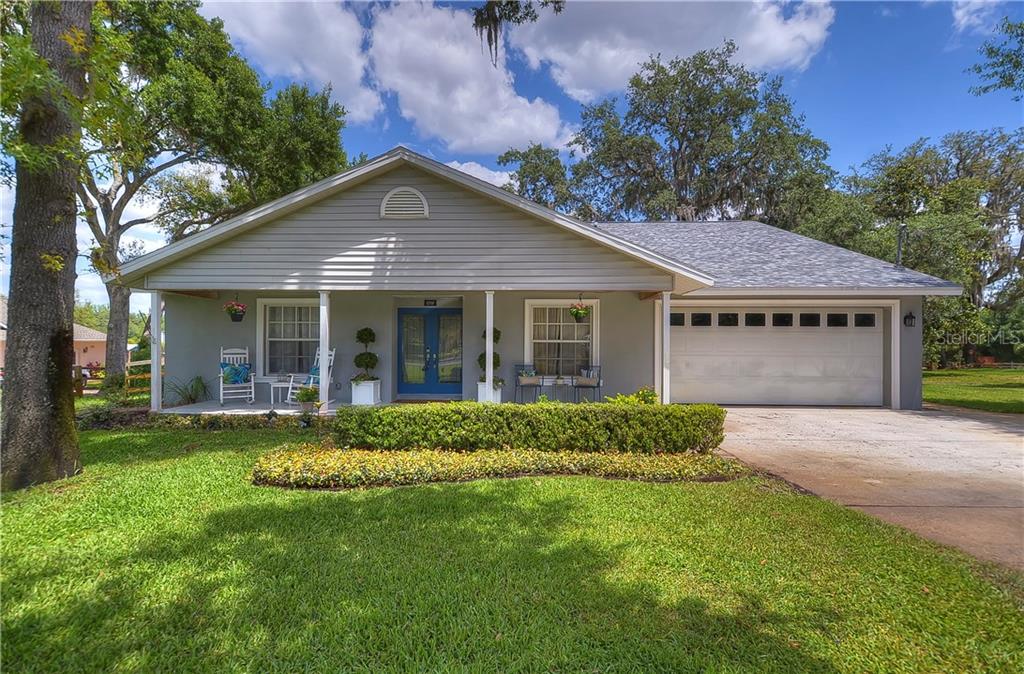 Wow! you will not be disappointed by this custom built single-family home! tastefully crafted with tons of upgrades throughout! sitting on a beautiful 1.19 acres with mature oak trees & great landscaping! charming front porch welcomes you in, you will love to swing & watch the kids play in the front yard! inside the double leaded & beveled glass front door, you will find stunning wood-look tile flooring throughout! no carpeting in this home, easy cleaning all year round! at the front of the home is a formal dining room & living room! also at the front of the home is a wonderful bonus room/flex space that could make a 4th bedroom, home office or even a kids playroom! any chef in the family will love this gourmet kitchen with granite counters, desirable white cabinets topped with crown, stainless appliances & a large center island with breakfast bar seating! this home is very bright with neutral paint throughout as well as bright wide baseboards! the open family room offers tall vaulted ceilings as well as a beautiful brick accented fireplace & double french doors leading to the lanai. your friends & family will love to gather in this space! master suite features wood floors as well as an updated en-suite boasting a huge walk-in closet, his & hers sinks, garden tub & separate shower; all with modern finishes! both secondary bedrooms have pretty wood flooring & large closets! oversized laundry room doubles as a mudroom from the garage. screened lanai overlooks all your lush acreage & a beautiful pond!Single Family House 3 bedrooms - FLINT LAKE PLATTED