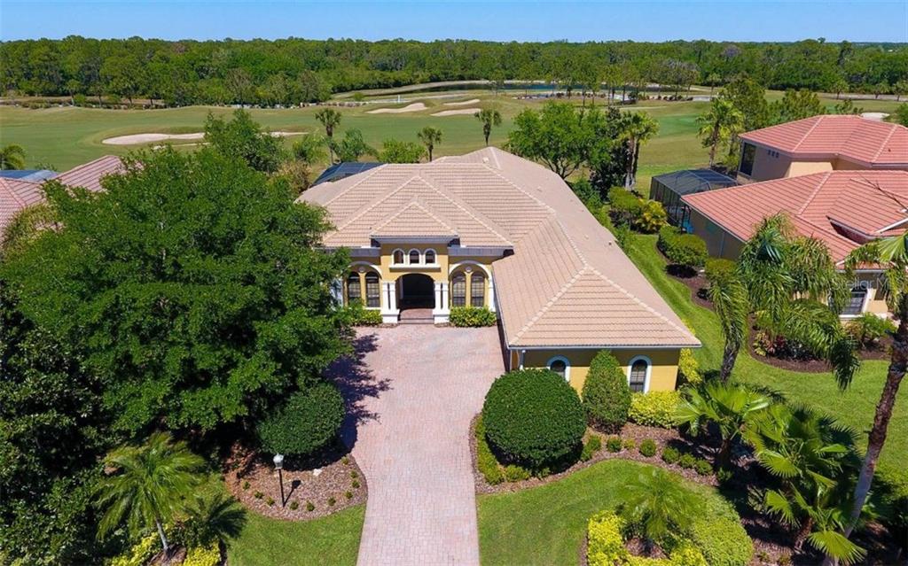 This spectacular john cannon estate home features panoramic views from the spectacular golf course lot. the open floor plan has a smart and functional single-story design allowing for easy livability. the gourmet kitchen is complete with custom cabinets, granite counters, six burner gas cooktop, breakfast bar, and center island with sink. overlooking the pool area through a large aquarium window, the kitchen nook is the perfect place to enjoy your mornings. the family room is perfectly positioned off the kitchen and features extra-large disappearing sliders that open fully to the lanai. the elegant master suite includes warm wood floors, sitting area, custom closets, luxurious bath with dual sinks, center island and a large roman shower. the stately office includes custom built-in bookcases, cabinets and desk. at the rear of the home is a den/bonus room with endless possibilities. for entertaining family and friends, the large screened lanai provides beautiful outdoor living space with summer kitchen and heated pool and spa. this is the perfect home to enjoy the lakewood ranch lifestyle!Single Family House 3 bedrooms - LAKEWOOD RANCH CCV SP FF