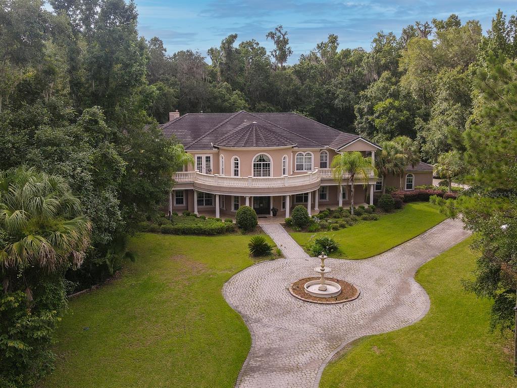 Exquisitely built custom home in the gated community of bellwether ocala florida. home sits on 3.40 acres and features 7 ensuite bedrooms and 8 bath and over 10,000 square feet of living space. drive up to this home where you will be greeted with two stories with balcony on both floors, water fountain in the middle of a pavers driveway and a 4 car garage with side entrance. step inside the large double doors where you're greeted with double circular stairways to the second floor accented with extravagant chandelier, formal dining and living rooms on either side and pillars, and " wow" those tiles. walk into the living room where you will be dazzled by the high ceiling, an elegant piece of art work which rolls up to display the hidden tv, and built-ins wall units of the highest class imagine. see crown moldings all over home an don't forget the kitchen with high class wood cabinets, and extravagant appliances. walk to the inside pool with high ceiling and all around decking to host your poolside parties. now step in the built in theater with large wall screen and relaxing theater chairs. a game room and so much more. home has bedrooms on both floors and a large food pantry. the luxurious master suite features separate large closet 2 separate showers, jetted tub and a relaxing lounge. outside entertainment area a tennis court and much more also present. check out this one and make it your dream home.Single Family House 7 bedrooms - BELLWETHER
