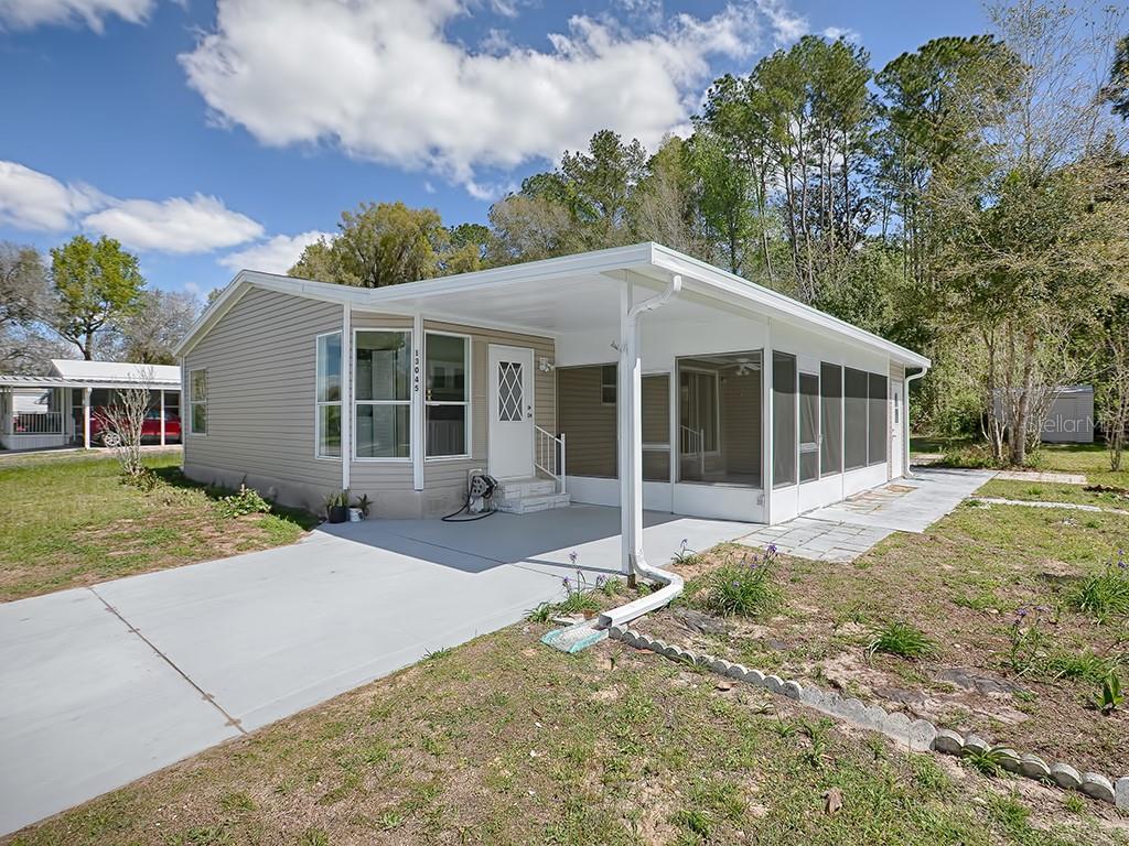 A newly redone home in a 55 plus community with privacy doesn't come along every day. this 2 bedroom & 2 bathroom cutie will be a must see on your list. don't let the living square footage fool you...this home has two large lanai areas to enjoy as they are light & airy or they could be converted into 4 season rooms to enjoy year round. there is also a carport under this roof to get your car out of the elements. to add details to the privacy topic, this home sits on just over a quarter of an acre & backs up to a larger property where you don't have homes right behind you but rather trees...trees are great neighbors that lend some shade rather than a cup of sugar. inside the home has had a lot of work done with an updated kitchen, tile backsplash, stainless steel oven & dishwasher, new paint, new flooring, redone bathrooms & more. there is a storage shed out back & room for more enhancements, storage & more. the community itself is in a great location just off of 484 where you could get to ocala, i75 or the villages all in about 15 minutes. a private pool & clubhouse or the residents are yet other great benefit to enjoy here for only $50 per month which includes water...that is just unheard of...wow! this home will certainly check your boxes that you've been looking for...be sure to come by soon to take a peak :-)Manufactured Home 2 bedrooms - TROPICANA VILLAGE 02