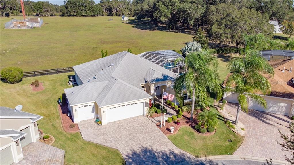 Privacy, privacy, privacy…did i say privacy? bond paid!!! on this magnificent, concrete block and stucco, designer gardenia with golf cart garage, in the village of caroline, only two minutes from lake sumter landing town square. conveniently located on a large cul-de-sac lot with a never to be built on preserve in the rear, owned and maintained by the villages. enjoy your florida retirement relaxing in a completely screened in the ground, heated pool or above ground hot tub in total privacy and bring your binoculars to enjoy birds and other wildlife. less than one year old stainless steel appliances, granite countertops, under cabinet lighting, pull-out cabinet shelves, two solar tubes for natural lighting, a fold down murphy bed in one of the bedrooms, crown molding with custom wood trim above the front door and rear sgd leading to the closed in, tiled and air conditioned/heated lanai, and two inch horizontal window blinds are just a few features of this one of a kind home. feel secure with the whole house alarm system and listen to your favorite music or newscast on a complete home built in stereo system. give away that vacuum! this home has large porcelain tile in the main area and bathrooms with real wood floors in the bedrooms. a beautiful, brick paver driveway leads to a garage with storage cabinets, acrylic floor, and a pull down, attic stair. gas golf cart and some furniture included. you gotta see this one! call your realtor today!Single Family House 3 bedrooms - THE VILLAGES