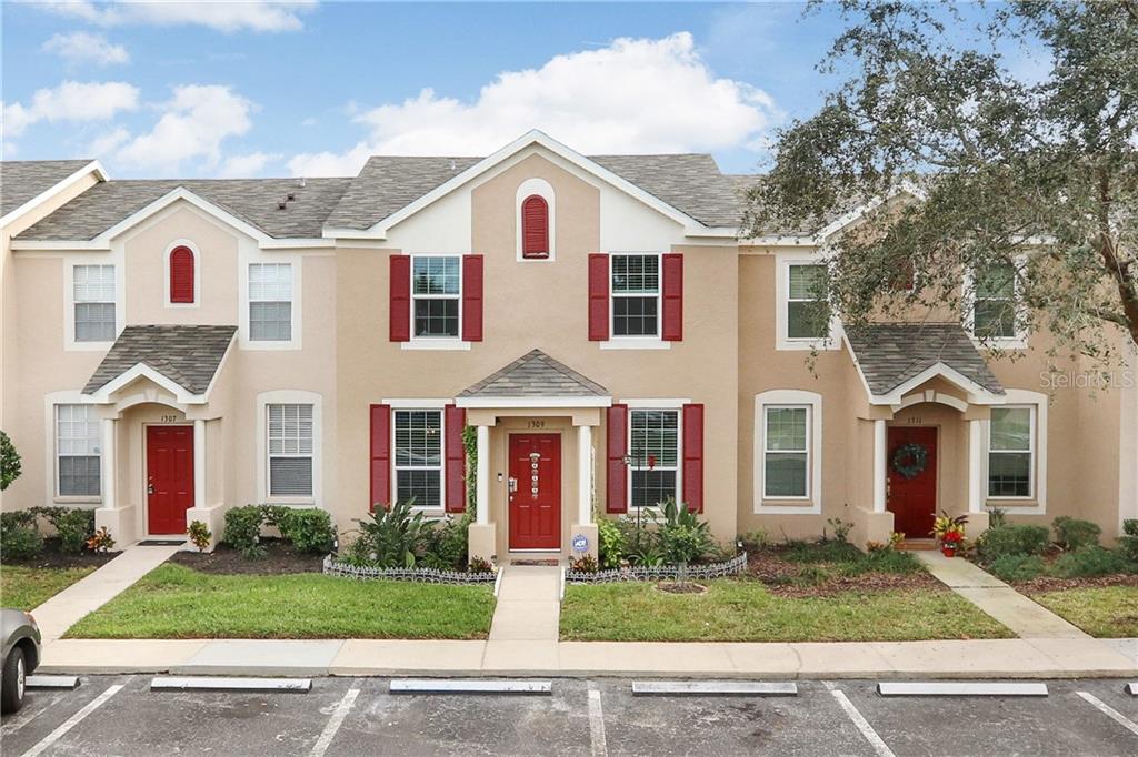 Perfect move in ready, maintenance free townhome in the highly desirable sedgwick community of meadow pointe. this 3 bedroom, 2.5 bath home with screened lanai and soaring cathedral ceilings has it all. gleaming laminate wood like flooring in living and dining room combo tiled wet areas making it easy for cleaning. gourmet kitchen boasts 36" upper cabinets, granite counters, breakfast bar, tile backsplash, stainless steel appliances, laundry closet, and closet pantry. upstairs are all bedrooms and 2 baths. kitchen oversees the family room making it perfect for entertainment. master suite has private bathroom and large walk in closet. enjoy the beautiful florida weather and the upgraded luscious landscaping on your private screened in lanai through double sliders. lanai features tile flooring and storage room. 2018 upgrades include new roof, exterior paint, custom interior paint, and energy efficient, dual glazed impact resistant windows. fully equipped and transferable adt security system with smart home capability to include electronic keypad, 1 interior camera and 2 exterior ring cameras, all of which are compatible with alexa or google home. 2 assigned parking spots. meadow pointe offers a variety of amenities such as a huge community pool, fitness center, tennis and basketball courts, and much more! special assessments paid in full.Townhouse 3 bedrooms - MEADOW POINTE