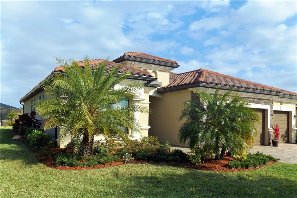 One or more photo(s) was virtually staged. large lot, beautiful princeton plan on one of the largest lots in the resort-style gran paradiso community, is a 4 bedroom, 2 bath, 3 car garage home. this beautifully designed home offers great architectural design with tray ceilings, crown molding, upgraded flooring, granite counter tops, raised panel 42’’ cabinets and stainless steel appliances. look out the large sliding glass doors to enjoy the beautiful natural surroundings, or enjoy the sun reflecting off of the gorgeous leaded glass door. enjoy the lake view from the breakfast nook. this home’s upgrades include professionally installed accordion hurricane shutters that close within minutes, as well as rain gutters and ceiling fans. . it is surrounded by lush tropical landscaping with very attractive large pavered driveway, walkway and lanai. the gran paradiso community is a resort style community offering amenities such as a zero entry heated pool, tennis and pickle ball courts, a state of the art fitness center, locker rooms, sauna, steam room, cable television and lawn maintenance are included with the hoa fee. this lovely home is a short walking distance to the communities’ 5 star amenities! this is a carefree living opportunity. take time to enjoy life & nature, sit in your screened lanai overlooking the lake while you plan your day’s activities or simply relax after a full day of enjoyment in this beautiful community. this home is move-in ready and priced right, it won’t last!Single Family House 4 bedrooms - GRAN PARADISO PH 1
