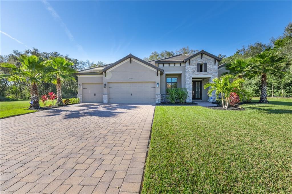 Priced to sell now! the extraordinary location of this amazing home is surpassed only by the intimate surroundings of this unique community, which features an exclusive enclave of only 19 homes w/ no cdd & low hoa -- a significant departure from today’s new home communities w/ hundreds of similar homes packed tightly together. an oasis of privacy, this homesite offers 180 degrees of mature preserves surrounding a secluded saltwater pool & spa w/ extended lanai. the front elevation features decorative stonework & accent corbels for an architecturally stunning first impression. impeccably maintained, this "one owner" home has a contemporary flair w/ an infusion of natural elements for a truly spectacular living experience. the substantial faux wood cross beams, together w/ a floor to ceiling faux stacked stone accent wall, beautifully blends w/ the wood grain wide plank coretec flooring. the magnificent chef worthy kitchen features staggered 42 inch cabinets, quartz, undermount lighting, & s/s appliances. the light & bright owner’s retreat is cozy & comfortable, & includes an en-suite bath w/ double vanities, a walk in shower, & a massive closet. presently, the second bedroom is utilized as a large office but can easily double as a second owner's retreat. the 3rd & 4th bedrooms are roomy, & the den offers terrific flex appeal. other highlights include upgraded lighting & fans, fitted blinds, fencing, & your very own citrus tree!Single Family House 4 bedrooms - GAMBLE CREEK ESTATES PH II & III