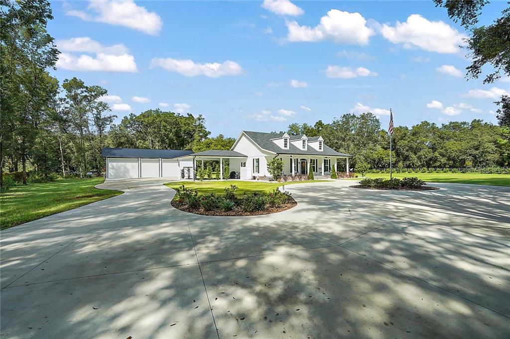 Looking for an amazing move-in ready home that meets all your needs from the exterior to the interior? well, look no further, than this custom-built 2018 modern farmhouse design. owners spared no expense on this build from the insulated foam block construction to the composite interlocking deck with no exposed screws! this truly is a one of a kind home and land purchase. and with no hoa or deed restrictions this location is amazingly private, yet, only minutes away from, schools, shopping, restaurants, and much more! situated on 5+/- acres and completely fenced, this home consists 1,700+/- sqft of living space (over 3,400sqft including large front and rear porches and two-car carport), 3br/2ba, swim-in-place pool/spa, family room, kitchen, inside laundry room, and detached three-bay garage with loft and workshop. from the moment you drive down the gated entryway to the circle driveway, you will fall in love with the beautiful landscape, southern front porch, board & batten architecture, and charm this home presents. throughout the home, you will find high-end finishes, such as, cathedral and volume ceilings, crown molding, trimmed-out windows and doorways, and glued down engineered wood floors that can withstand the highest wear and tear, provide no squeaking or gaps when you walk (like floating floors), and is resistant to water, spills and pet accidents. the living room, kitchen, and dining room incorporate an open design concept with the master and one guest room on the north wing, while the south wing features a second guest bedroom/office, guest bath, and laundry room. the living room focal point is a white-washed fireplace complimented by a cypress mantle hand-cut and carved from hundreds of year-old cypress trees harvested out of the nearby withlacoochee river. this same wood is featured in the south wing guest bedroom/office as a shiplap wall and also a hand-built and carved door for the pantry. these are custom touches you rarely find in a home and the rich history of local surroundings. the kitchen is highlighted by white shaker cabinetry w/ catch drawers, display cabinets on top with glass doors, granite countertops, subway tile backsplash, plate rack, stainless steel appliances with gas range, farmhouse sink, large closet pantry & island serving bar. the master suite is spacious with a large walk-in closet and exquisite master bath highlighted by navy blue shiplap, dual sinks with granite counters, a large walk-in shower. the exterior is no less impressive and great for entertaining or relaxing with a 600+sqft raised covered deck and a swim-in-place pool/spa recessed within the deck. and with a 40 x 60 three-bay garage with rv storage bay, you’ll never run out of storage. this garage is impressive with automatic overhead doors and an enclosed workshop with overhead loft for additional storage. this home is truly a showpiece and a must-see to appreciate, so call today and set up your private showing before it’s gone!Single Family House 3 bedrooms - N/A