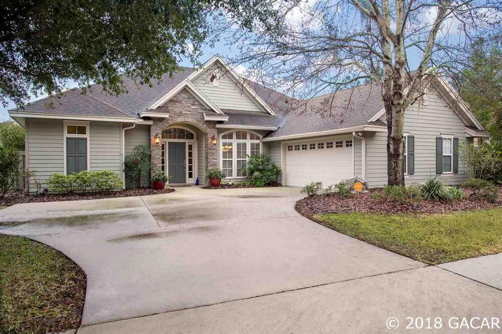 This is the house you have been looking for! 4 bedrooms, 3 bathrooms, conveniently located off newberry road in arbor greens, this house is the perfect location just minutes from the oaks mall, north florida regional medical center, shands, and just steps from tioga town center. light and bright floor plan, featuring a private master suite, with a large walk in closet, separate walk-in shower and jetted tub, water closet, and vanity space. the kitchen is very functional with a center island and plenty of counter space, granite counters, gas range, tiles backsplash, all overlooking the great room with expansive windows. double sided fireplace, tons of natural light, and stone accents make this home standout. huge screened lanai that is accessible from multiple parts of the house overlooks gorgeous common area that offers you peace and privacy in your back yard. you will love this warm and welcoming home from the minute you see it!Single Family House 4 bedrooms - Arbor Greens