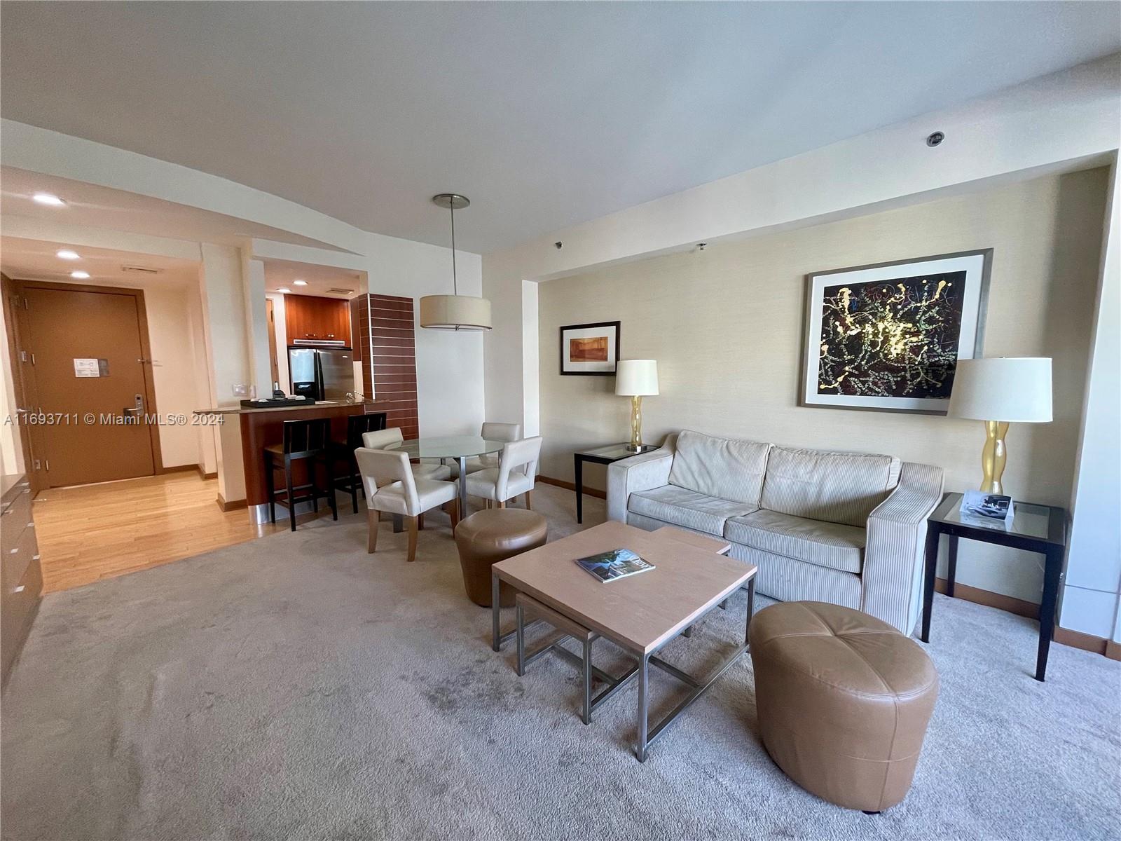 Ncredible large furnished 2 bedroom 2 .5 bath (1,388 sf) ,24hr bell man service and room service at your fingertip! 2 tennis courts, 24hr gym, spa, restaurant and wine room. enjoy the city life and walk to local night life. investor friendly can rent daily, weekly or monthly! no rental restrictions, is a multi award-winning architectural building. merit award (aia new york 2001), recognition award (acec nat’l 2004), platinum award - structural (acec new york), best commercial building (aia florida 2012), skyscraper award-#8 (emporis 2004), residential developments-finalist (mipim 2005).furnished unit.Condo Apartment 2 bedrooms - AKA