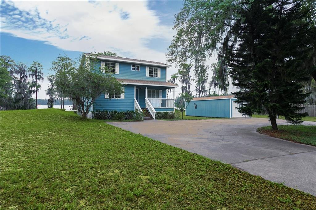 Greetings! introducing this 2 story, single-family home located on 2 acres of land on lake gifford. this home has over 166ft of lake frontage with room to build a nice dock to go fishing off from. this two-story home has 3 bedrooms and 2 bathrooms, with the master bedroom located on the first floor (in case a family member cannot climb stairs). this home is a place of peace and quiet where you do not have many neighbors. on the first floor, you have wood flooring in the living area and ceramic tile in the kitchen. the kitchen and bathrooms are clean and fresh, each with a window for natural light. massive deck to sit outside on your rocking chair overlooking the sun go down on the lake, all while someone is bbqing your favorite meal. watch each morning as the sun rises from all of the living area and kitchen. there is no hoa for this home which allows you more flexibility for having chickens or building another workspace. there is a detached garage for one car and room for all of your diy gear. no more trying to find parking, this home has plenty of free parking for your vehicles. you are not far from the entrance to walt disney world and all its attractions, the new margarita ville, other entertainment, restaurants, shopping and much more. come home to your own private hideaway.Single Family House 3 bedrooms - ACREAGE & UNREC