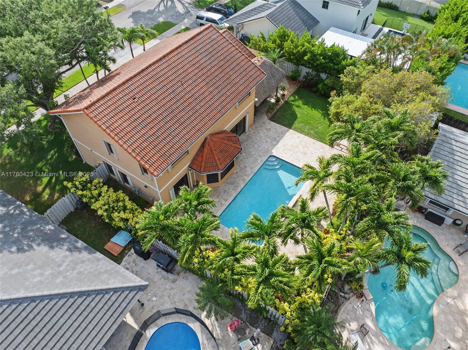 Welcome to your family’s dream home in shenandoah—one of davie’s most desirable neighborhoods with a+ schools and low hoa! this 4-bed, 3-bath gem offers a spacious layout with updated tile and laminate flooring, knockdown ceilings, a remodeled kitchen open to the family room, and a large fenced yard perfect for kids and pets. enjoy a gorgeous 27x13 pool, illuminated tiki hut (re-thatched 2024), bbq area, and lush tropical landscaping with lighting. safety features include impact windows (6), accordion shutters, security system, sprinkler system, and fenced yard. extras like an outdoor shower, epoxy garage floor, attic storage, and wall-mount ready spaces make life easier. truly move-in ready for your family!Single Family House 4 bedrooms - SHENANDOAH SECTION TWO