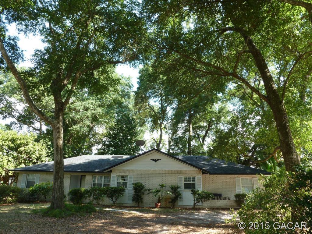 Geneva lake estates home nestled under beautiful oaks. vaulted ceiling great room has decorative wood beams, stone fireplace and skylight. home is completely tiled for easy cleaning and has a split bedroom floor plan. enjoy the private back yard as you lounge in the florida room with western cedar wood walls. home overlooks meadow of adjoining horse farm. spacious kitchen has eat-in bar & pantry with adjoining dining room. oversized laundry room has access to one car garage. master bedroom has large walk-in closet. home has white stucco brick over concrete block construction. located just minutes from lake santa fe. easy drive to gainesville, palatka or starke.Single Family House 3 bedrooms - Geneva Oaks