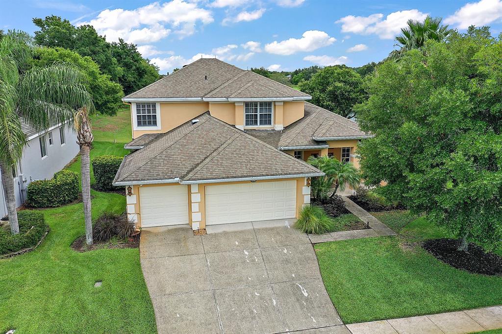 One or more photo(s) has been virtually staged. welcome to your dream home located on the golf course in the highly sought after legends golf & country club! it is move-in ready and waiting for you! this home boasts 3314 sqft, 4 beds, 4.5 baths, 3 car garage, kitchen/living room combo, in-ground saltwater pool, all with golf course views from both your front and back yards! you'll find plenty of upgrades throughout the house including crown molding, 2" plantation shutters on all windows, custom built-in shelves in living room and loft, solid wood cabinets, granite countertops, hard wired security system, and bose surround sound speakers in the rear. main floor master bedroom is spacious with a separate area that can be used for a small office or lounge. french doors lead out to the patio and the beautiful view of the hole 3. huge walk-in closet and ensuite accompany the master. upstairs you'll find a spacious loft with a built in wine fridge and custom shelves. tv will be staying in the loft and will make for a great movie room. 3 oversized bedrooms and 2 full bathrooms are upstairs as well. and don't forget about your own oasis out back. enjoy watching the golfers on the course while relaxing on your screened in patio or while swimming in your gorgeous saltwater pool. a full bathroom is located outside on the patio as well for convenience. garage floor was freshly painted and coated as well! community amenities include 24 hour manned security gate, huge pool, spa, sauna, fitness center, tennis courts, and restaurant on premise. located in the heart of clermont and close to all shops, restaurants, theme parks, and airport! don't let this one pass by!Single Family House 4 bedrooms - CLERMONT BRIDGESTONE AT LEGENDS PH 02 LO