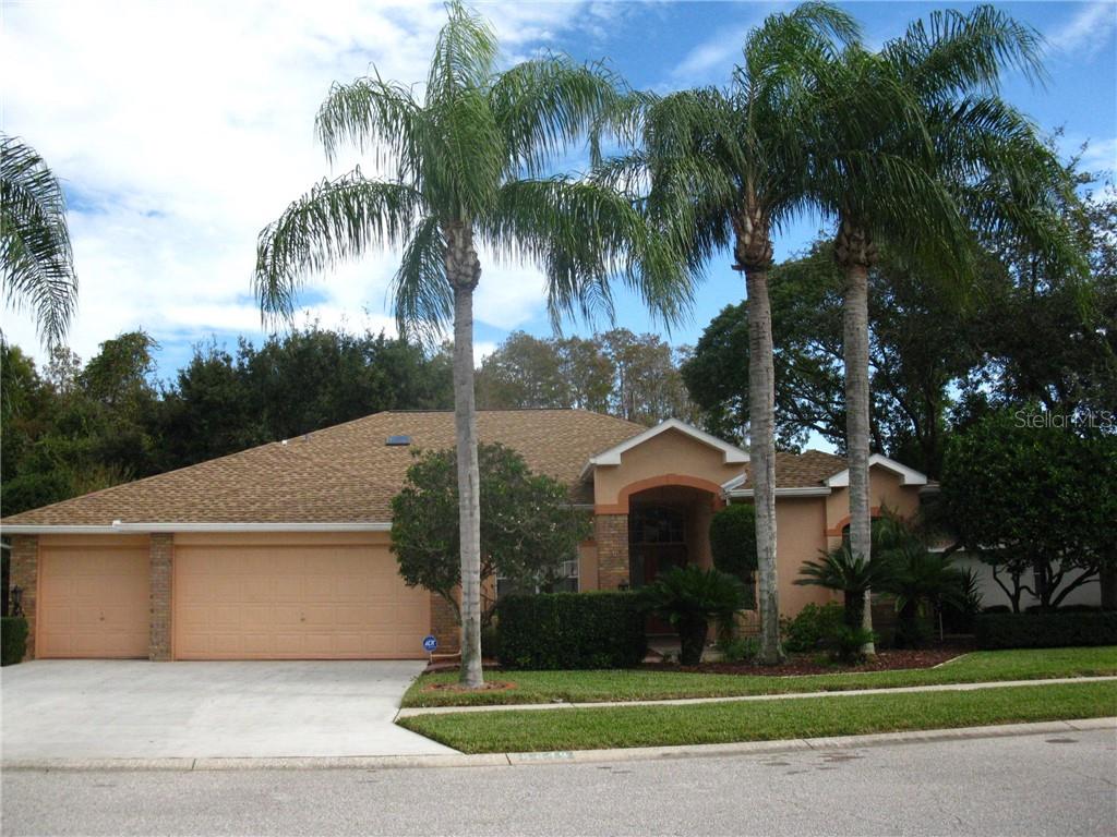 Welcome to this beautiful home in trinity oaks! built in 1994 with 2,376 square feet of living area, this 4 bed, 3 bath, 3 car garage home offers a comfortable 3 way split plan with high ceilings and tile, wood & laminate flooring throughout. formal living and dining room combo with lanai access. open island kitchen with granite counters, plentiful cabinetry and a walk-in pantry overlooks the spacious family room with a wood burning fireplace and built-in shelving. (large flat screen tv included in the sale) sizeable master suite with walk-in closet and a lovely master bath with dual sinks, garden tub and separate glass shower. three other bedrooms for family or guests and one has a full bath and is a suite unto itself with lanai access. laundry room with utility sink. huge covered and fully screened lanai and pool area with an outdoor kitchen with cabinetry, sink and gas grill, perfect for entertaining. beautifully landscaped including fruit trees and a well for irrigation. all overlooking a small pond and conservation area. trinity is a peaceful and enjoyable place to live; close to suncoast ymca, recreation, schools, shopping and hospitals. fresh interior paint and termite warranty in place. new roof in 2018!Single Family House 4 bedrooms - TRINITY OAKS INCREMENT X