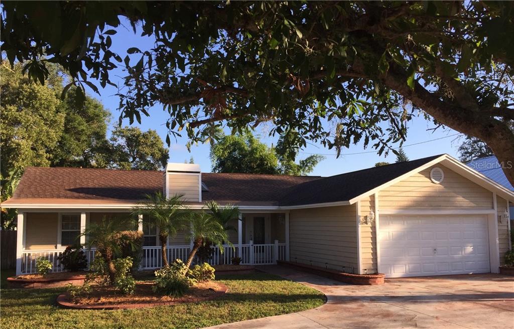 You'll love this beautiful upgraded ranch-style home with a large circular driveway, fountain and lush landscaping. a decorative front door welcomes you to an open floor plan with tile floors, perfect for entertaining. the cedar wood walls create a warm inviting feel, while the vaulted ceilings and skylights offer a bright, spacious environment. take advantage of the quaint, cozy atmosphere by the fireplace to cuddle up with a good book. updated kitchen features solid surface counter tops, classic white wood cabinets with interior lighting, bosch dishwasher, brand new stainless steel refrigerator and stove. unique chandelier in the dining area adds to the overall modern-rustic appeal of the home. private master bedroom with crown molding features a sitting area, organized walk in closet and updated bathroom. updated features to the home in 2016 include but are not limited to newly painted exterior, ac, water heater and new washer/dryer. situated in “delightful” dunedin, less than a mile to the dunedin community center (gym, basketball, pool, tennis, etc.), fine art center, 90-acre hammock park and minutes to downtown and honeymoon island...the perfect home in the perfect town!Single Family House 3 bedrooms - FAIRWAY HEIGHTS