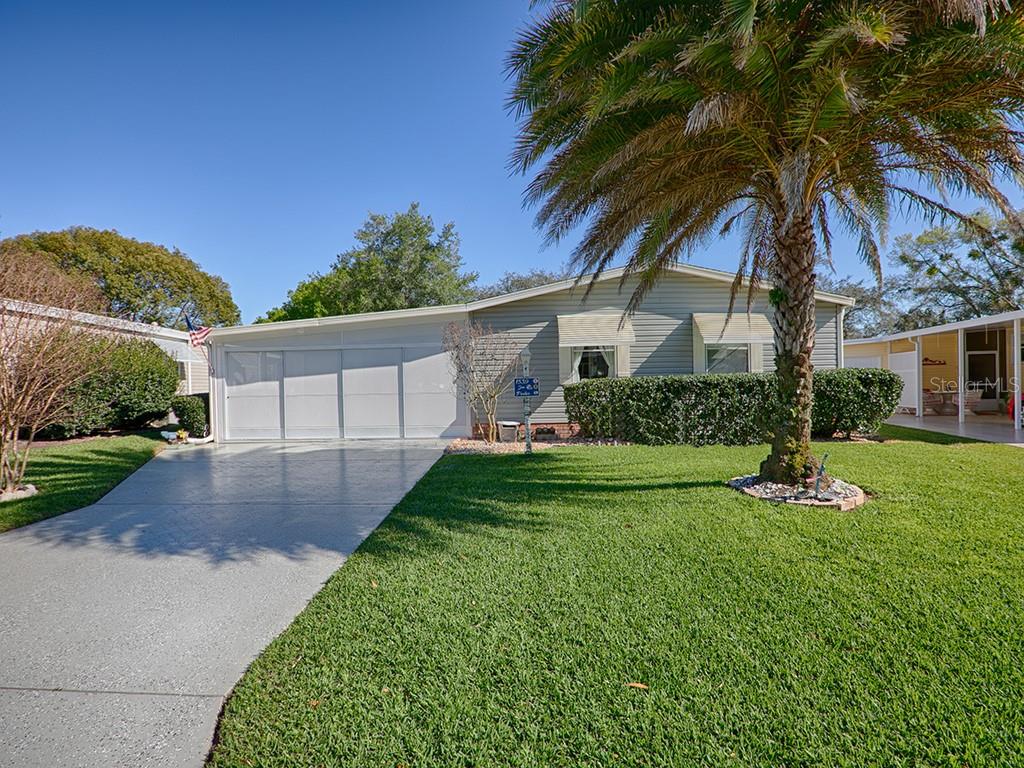 Yes, you can have it all - no bond, affordable, turnkey w/ golf cart, golf course frontage, & unmatched villages lifestyle!! located in the village of orange blossom gardens, this adorable 2 br/2 ba/1 car carport w/ golf cart garage manufactured home w/ golf course frontage is located on the orange blossom hills championship golf course. this little gem has well manicured, curb appeal due to a cosmetic facelift w/ new exterior vinyl siding & downspouts (2017), extra wide painted driveway, new garage screens (2019), a replaced hvac (2011), a sylvester palm tree in front yard, & mature shrubbery w/ rock filled landscaping beds. the huge, screen enclosed lanai with slate floors in the rear will certainly become your favorite place at home. it has attractive ceramic tile flooring w/ comfortable, color-coordinated outdoor furniture, shade screens, & a one-of-a-kind serene golf course view - no golf cart path nearby & no extraneous golf balls to pick up! it is the perfect place to relax & unwind or entertain friends after a round of golf. once inside, you will enjoy the cozy & casual ambiance created by the decor. the main living area feels so spacious w/ a cathedral ceiling. the kitchen sports a new wood laminate floor. large master br has ample closet storage space. ensuite master ba has a walk-in shower. guest bathroom has a tub/shower combo. and...the gc garage simultaneously houses a newer washer & dryer & has extra storage capacity. what could you possibly be waiting for? pick up the phone and call now for your private showing, or view the virtual tour by copying and pasting this link into your web browser: https://vimeopro.com/rsbphotography/1539-hillcrest-dr-the-villages-fl-32159Manufactured Home 2 bedrooms - THE VILLAGES