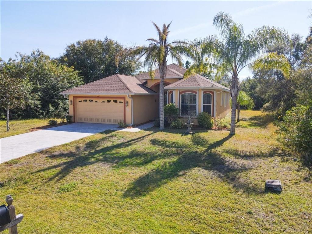 Don’t miss this gorgeous 3 bedroom 2 bath 1751 sqr ft beauty in the popular deed-restricted community of rotonda lakes, situated just minutes from golf and the gulf! built in 2006 with every detail in mind this home is a stunner, from the gorgeous over-sized aquarium window in the dinette overlooking the extended lanai, to the solar tubes providing bright light in the day and soft moon light at night, as well as rounded corners, angular archways, and vaulted tray ceilings throughout. elegance is noted immediately with the front paver drive & walk way, to the gorgeous lead-glass double front entry door. step inside and feel like you are outside with the warmth of the solar tube lighting and expansive slider and aquarium window drawing you to the private tropical oasis out back. the main living area and dining have gorgeous tray ceilings. kitchen has plenty of counter space, with stainless steel appliances, a double closet pantry, built-in desk, breakfast bar and a fabulous dinette area with a view. the master suite is private and spacious with tray ceiling and 3 large windows, its own access to the patio, and a large walk-in closet. the master bath offers a nice walk-in shower, dual sinks, linen closet and a private water closet. the two guest bedrooms are at the front of the home with their own bathroom. the back patio has been extended and screened in so you have nice space under cover as well as room to bask in the sun. the home has locking accordion shutters on all windows, the front door and across the back lanai, keeping your home safe & secure from a storm or if you are away. it also has a security system, in-wall pest control system, and a manabloc plumbing system. this home is being offered turn-key furnished, even including bicycles & boogie boards, so bring your suitcase and move right in! do not hesitate ….this beauty will not last long!Single Family House 3 bedrooms - ROTONDA LAKES