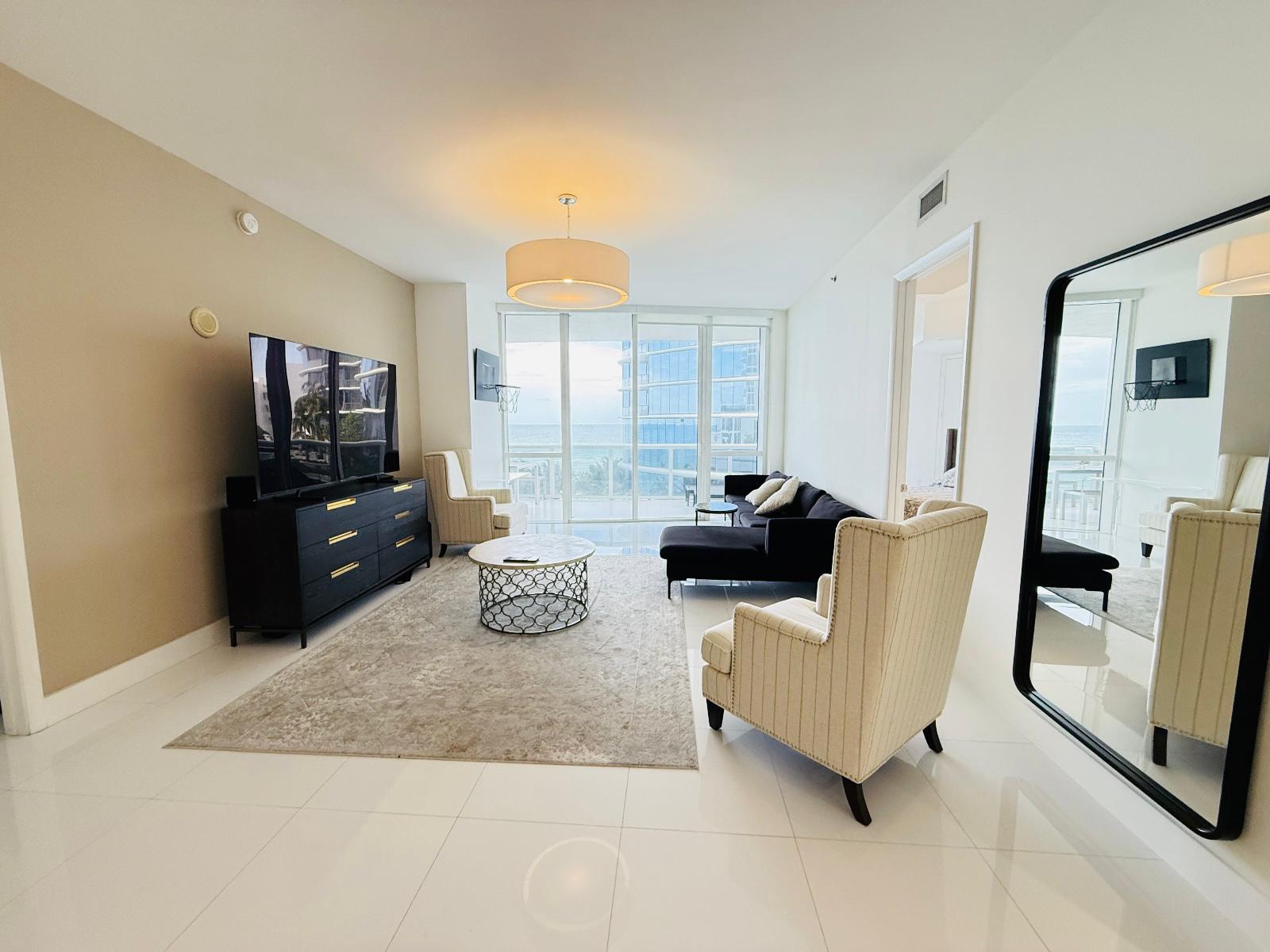 Spacious and beautifully furnished 2-bedroom + enclosed den / 3-bath residence with breathtaking ocean and city views. featuring soaring 11-foot ceilings, an open-concept kitchen with granite countertops and stainless steel appliances, and a smart, comfortable layout — this unit is move-in ready. enjoy resort-style living with premium amenities, including a gym, sauna, heated pool, clubroom, business center, kids room, and full beach service with towels and chairs. perfectly located within walking distance to restaurants and shops, and just minutes from bal harbour, aventura mall, and major airports15811 COLLINS AVE #507, SUNNY ISLES BEACH, FL 33160